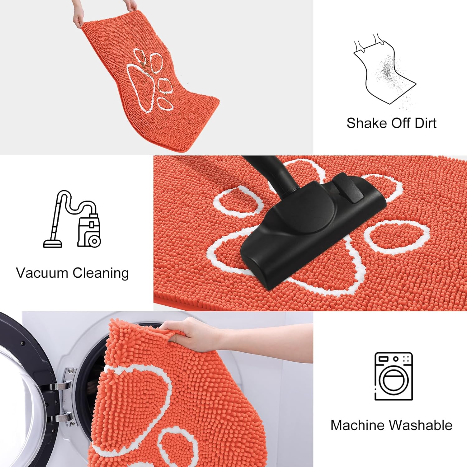 Smiry Dog Door Mat for Muddy Paws, Absorbent Dirt Trapper Non Slip Quick Dry Washable Chenille Mat for Mud Dogs, Entry Rug for Indoor and Outdoor (30x20 Inches, Coral)