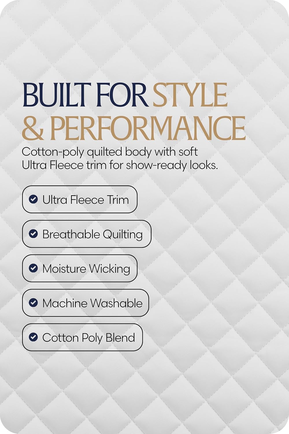 - ✅ Durable and Comfortable Design – The quilted poly cotton body ensures long-lasting durability and breathability, providing your horse with the ultimate comfort for hours of riding, whether you’re in the show ring or out for training.