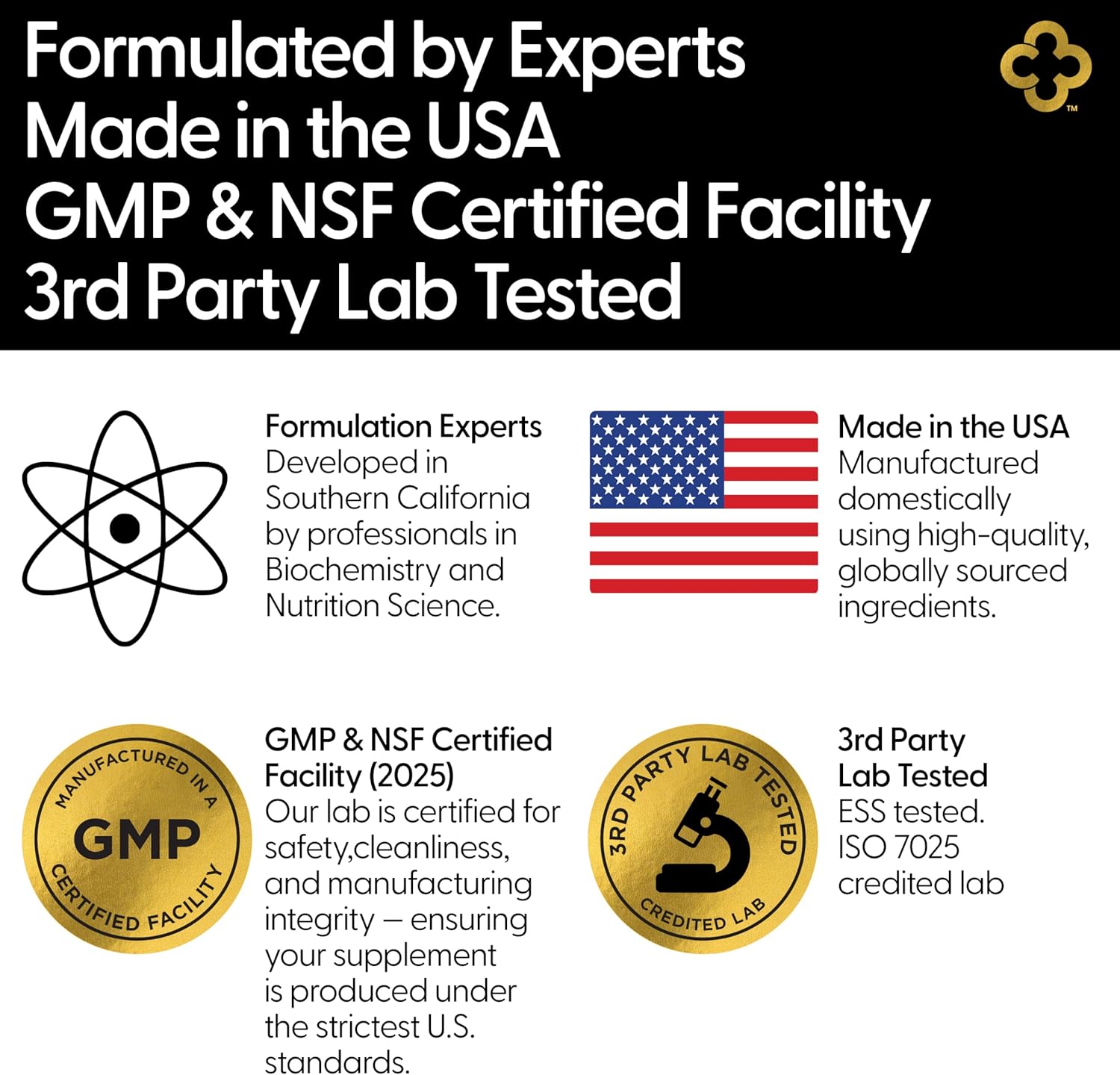 - PREMIUM QUALITY, MADE IN USA: Produced in a cGMP-certified facility, our supplement is free from sugar, artificial flavors, sweeteners, tree nuts, synthetic dyes, titanium dioxide, dairy, and egg ingredients.