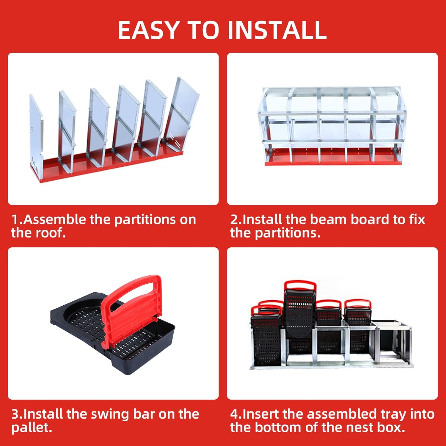 - CONVENIENT EGG COLLECTION MECHANISM: The unique tilting design of this nesting box allows the eggs to roll automatically into the collection tray for quick and easy egg collection. Say goodbye to tedious manual egg picking, you can easily access fresh eggs while ensuring they are intact.