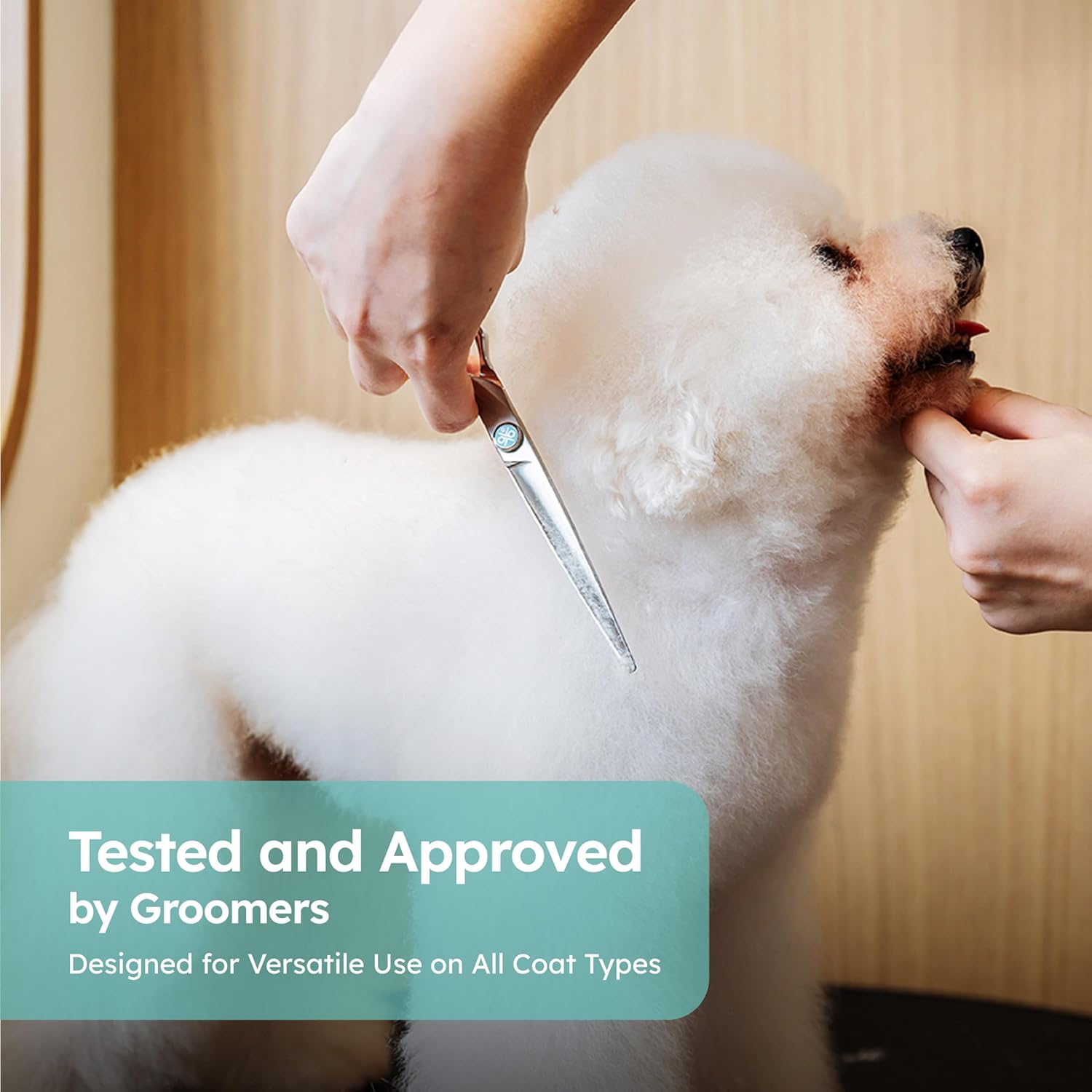 - Curved Design for Precision Grooming – 7” curved blades designed for face, ears, paws, and tail. No pulling or snagging, ensures faster, smoother trims. Ideal for Poodles, Bichons, Yorkies, and detailed styles.