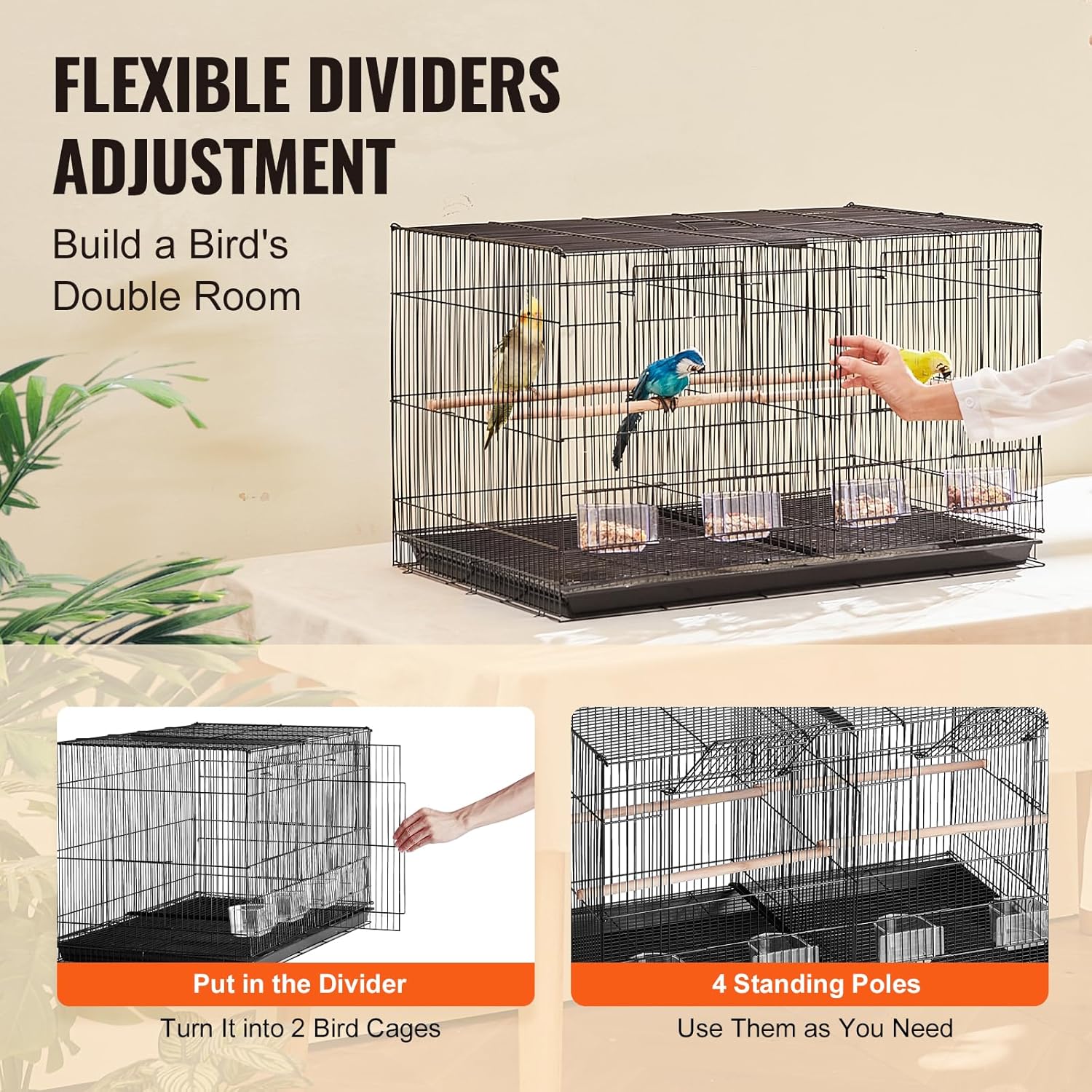 - Flexible Divider Design: Insert the shelf and the birdcage can be divided into two independent living spaces, especially suitable for keeping different species of birds.