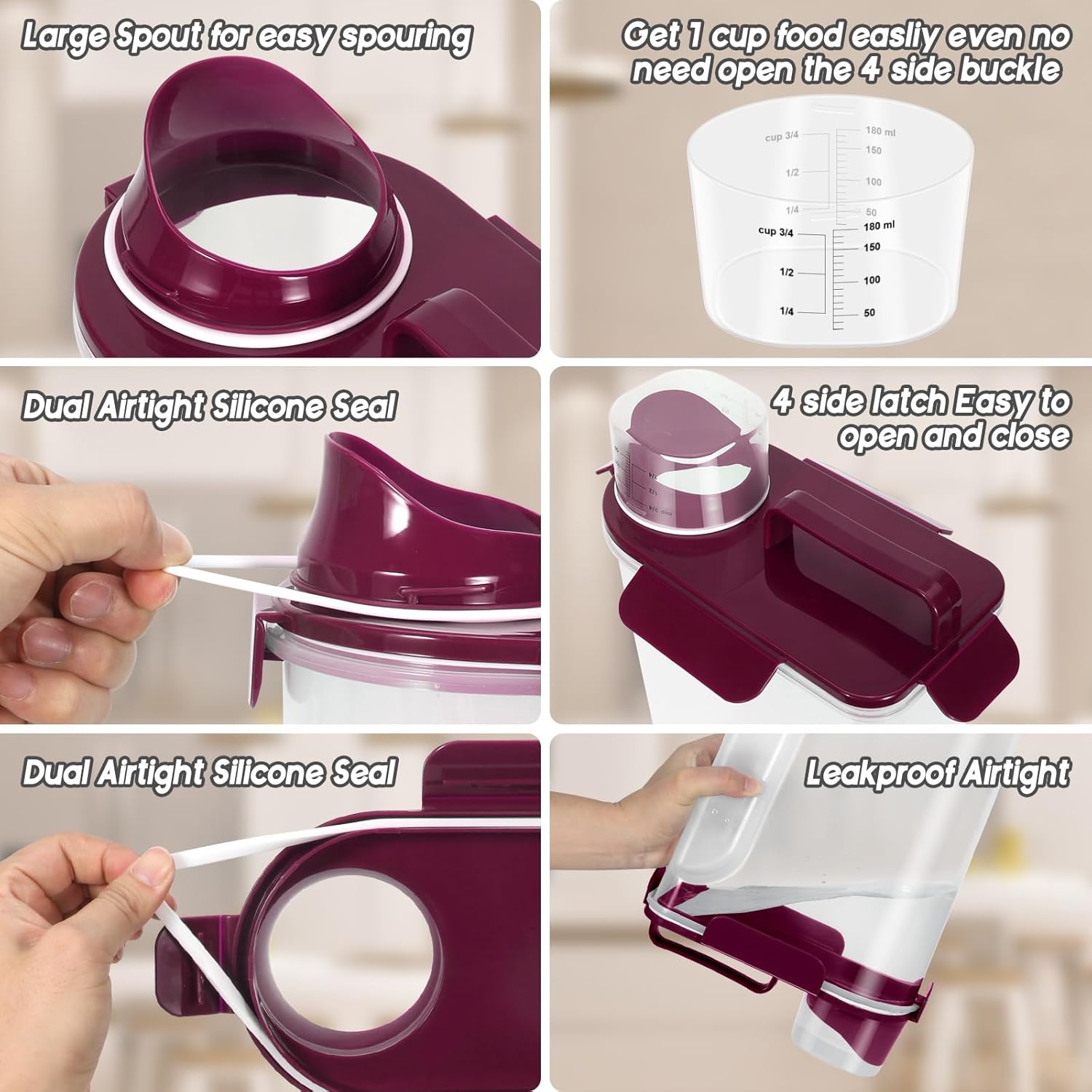 - MULTI-PURPOSE STORAGE : Our pet food container is suitable for storing dog food、cat food、bird seed、fish food、rice、 dry food、cereals、oats、flour and other large and small grains, as well as washing powder used at home. It is also a good choice.