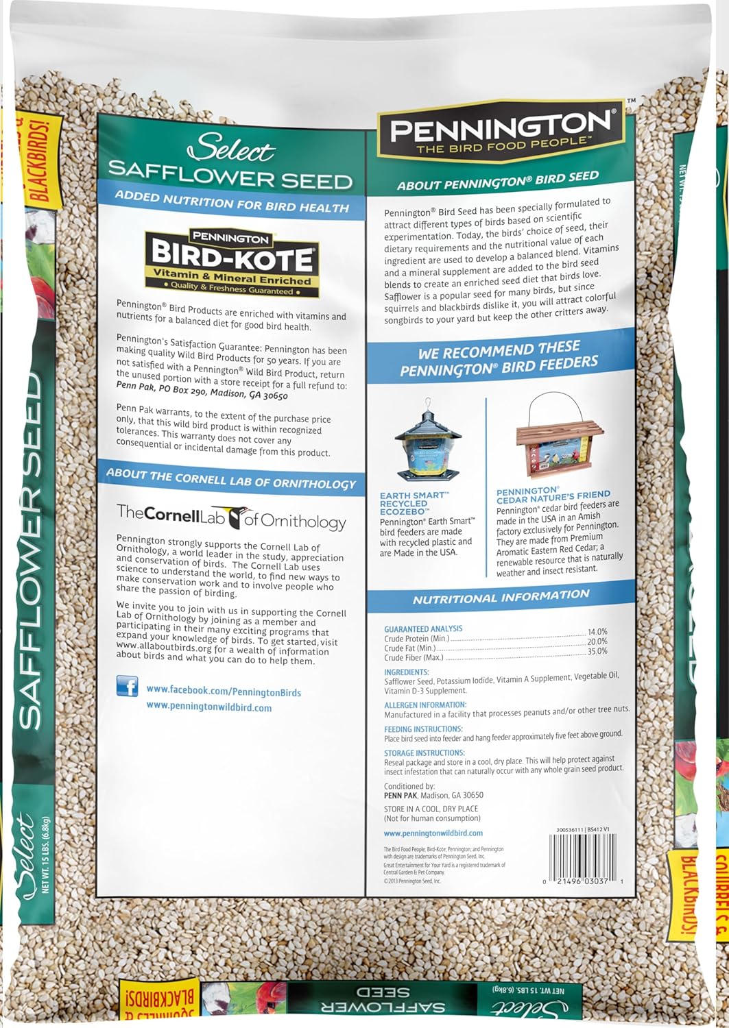 - Safflower seed is bitter-tasting to squirrels, but birds love it