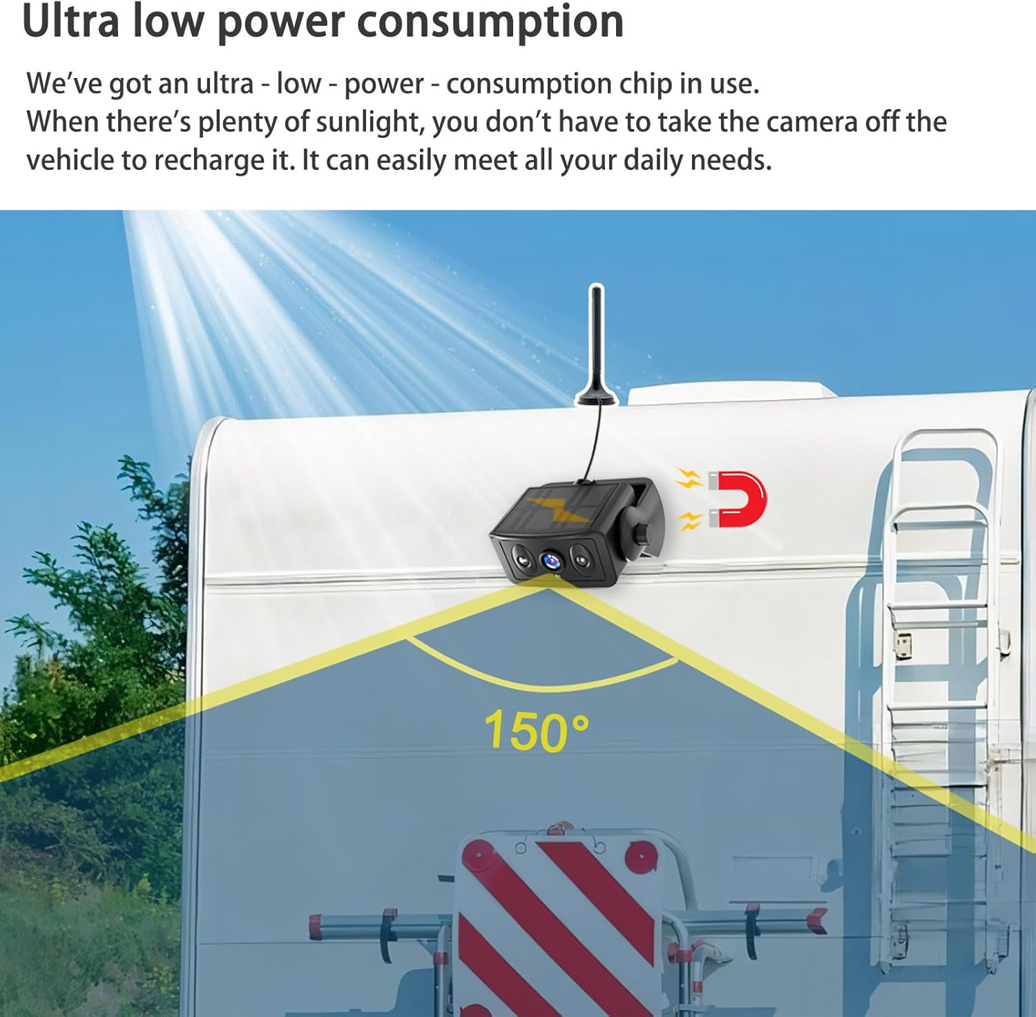 - Ultra low power consumption: We've got an ultra - low - power - consumption chip in use. making it perfect for RVs, trailers, and travel applications, Gooseneck Horse Boat Pickup Truck Travel Trailer RV Camper...... Attention: "Use only the charging cable that came with your camera. Other cables might not work and could prevent it from charging."
