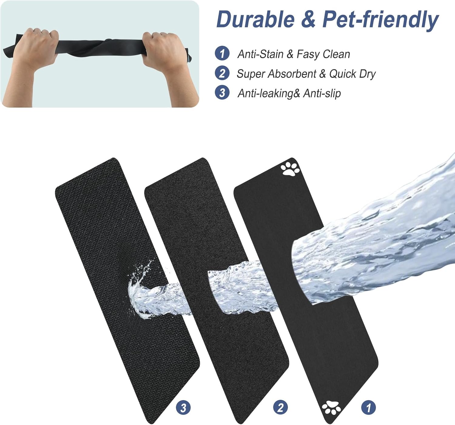 - Pet Feeding MatοΌabsorbent dog mat for food and water bowl,no stains quick dry dog water dispenser mat,dog accessories pet supplies,dog water bowl for messy drinkers,this pet food mat can prevent liquid from overflowing. super absorbent and quick-drying ability to avoid wetting pet paws even for messy drinkers. sturdy dog & cat food bowl mat cannot be torn easily and avoid eating by mistake. keep the pet's eating environment tidy and clean.