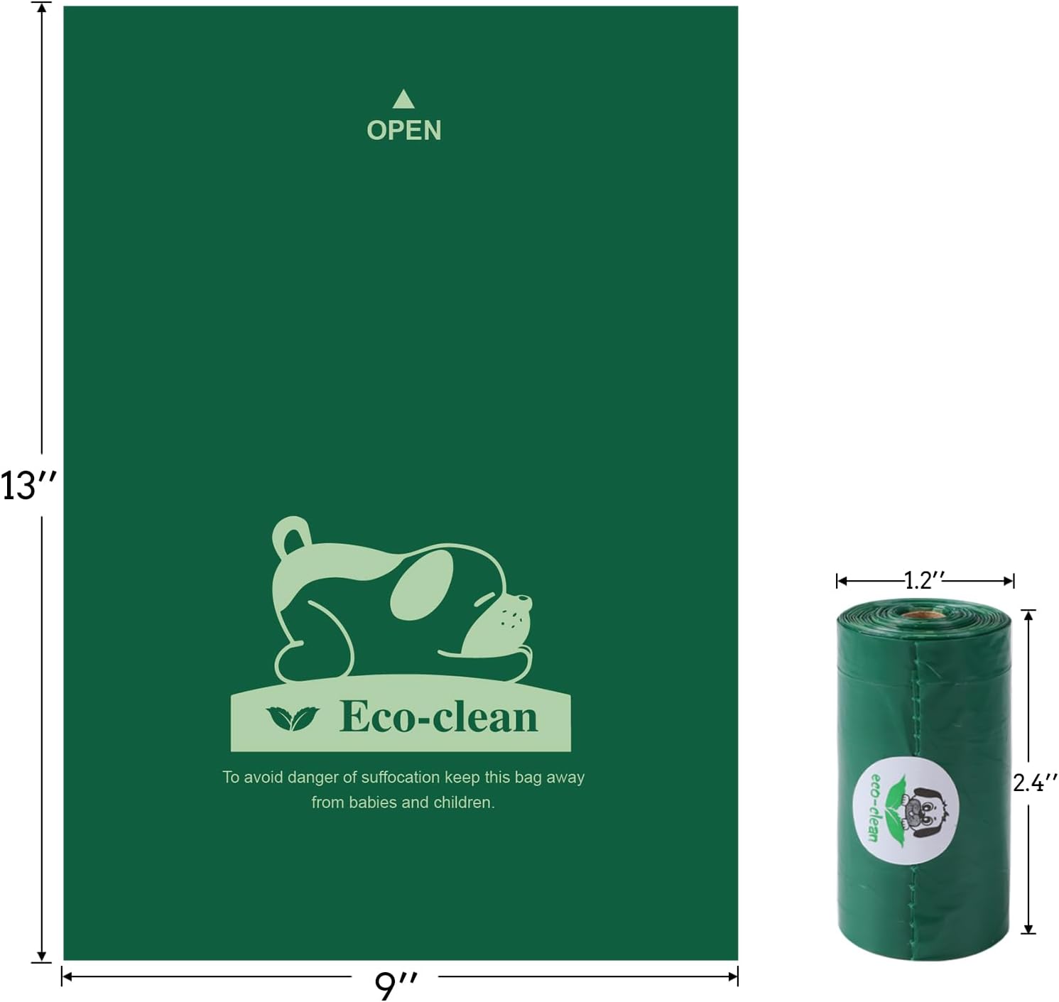 - Eco-clean Dog Waste Bags: Unscented, 9”x13” doggy bags keep your hands safe, and odor contained.