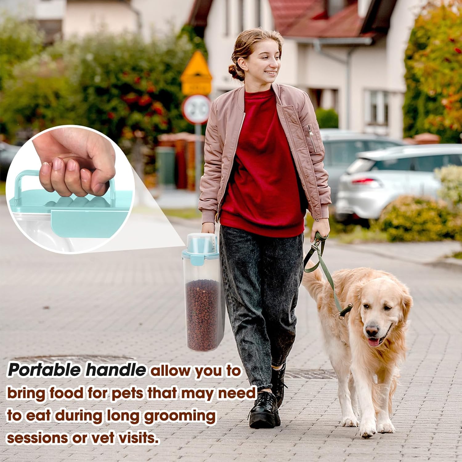 - Practical Dog Food Bin For Indoors/Outdoors: The pet food storage container also features a handle on top , so you can easily transport the food from shelves to your dog bowls, even when the container is full