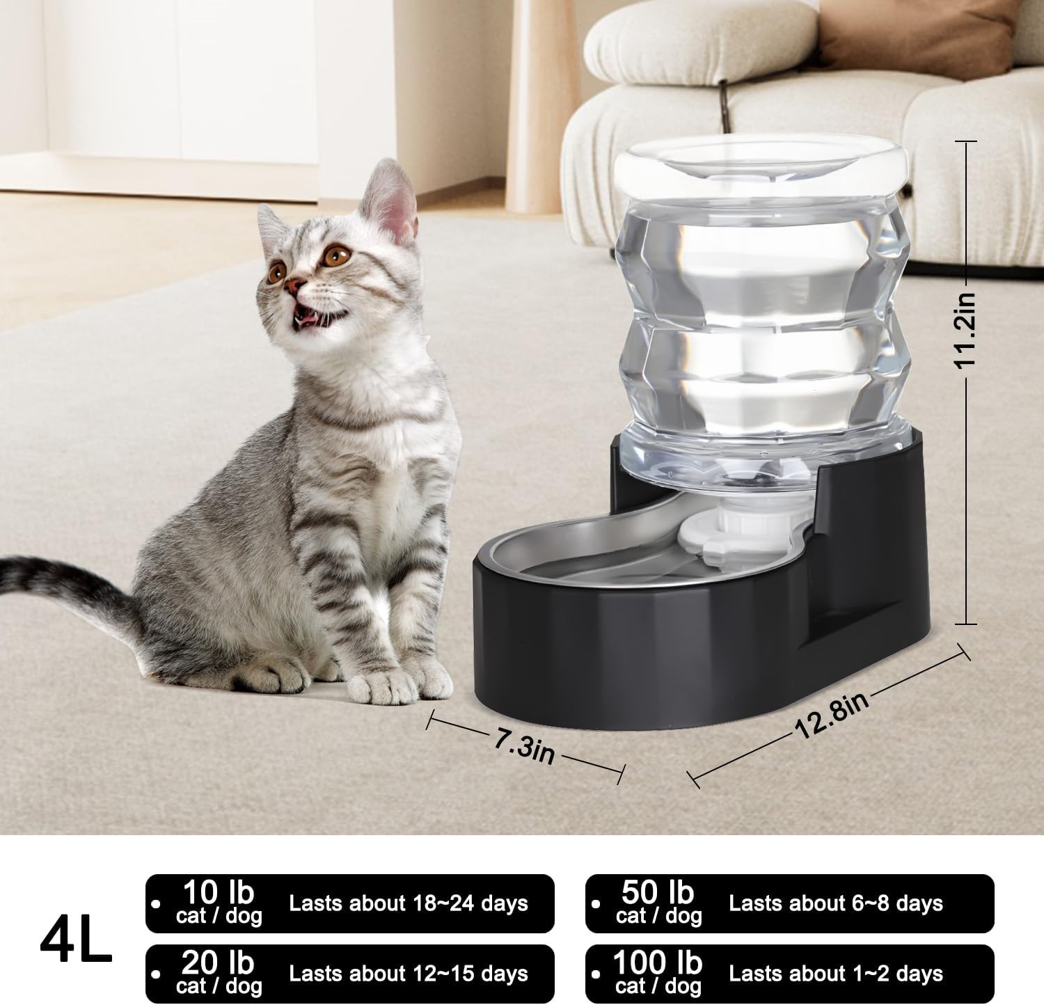 Sfozstra Automatic Gravity Dispenser for Cats: 4L Black Stainless Steel Water Bowl Feeder - Great for Family Homes and Outdoor Activities