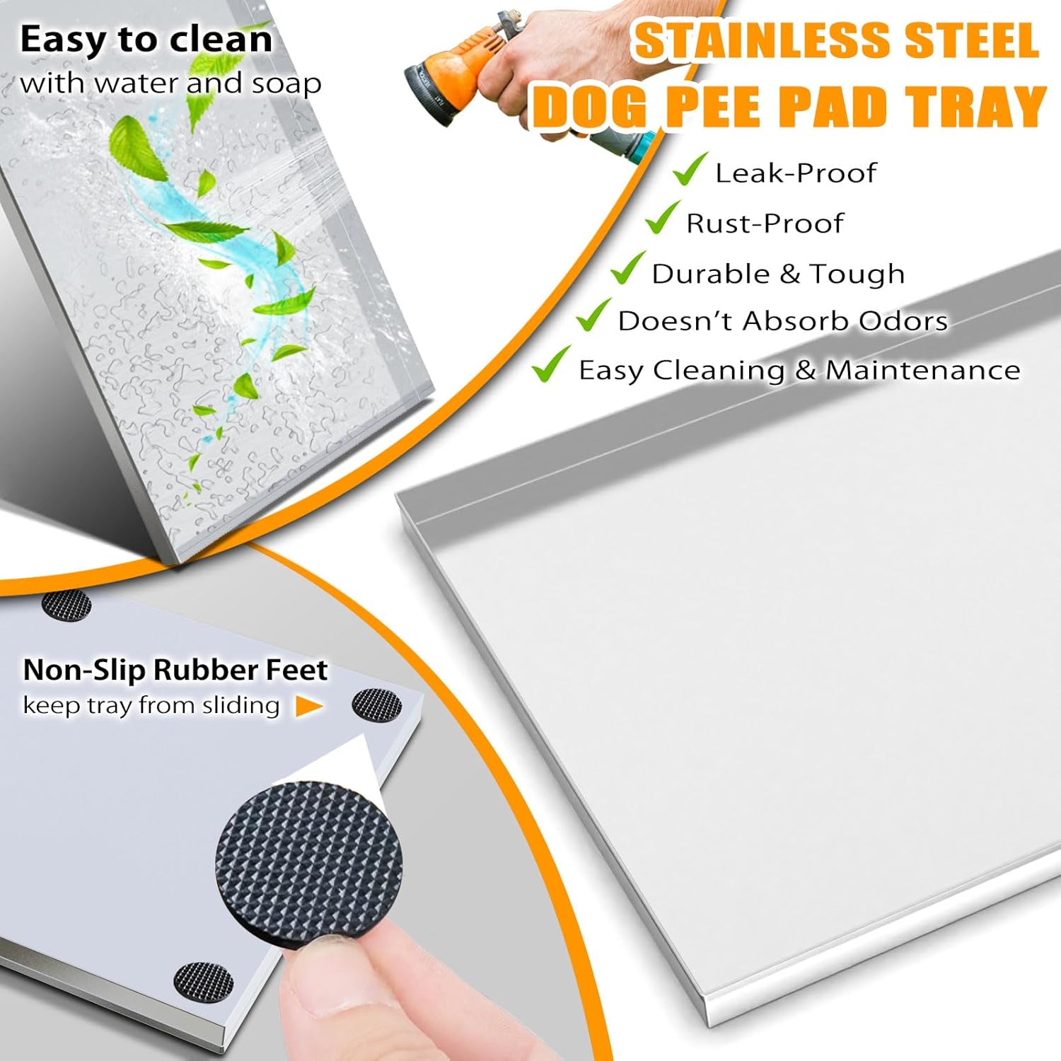- 【Stainless Steel Tray】 This dog grass pad with Tray is made of heavy duty industrial grade 304 stainless steel, boasting a service life of 5-8 years (ordinary plastic trays typically yellow and deform within 6 months). The reinforced steel frame prevents warping, even under large dogs weighing up to 250 lbs. Compared to plastic, making it ideal for households with pets prone to skin sensitivities.