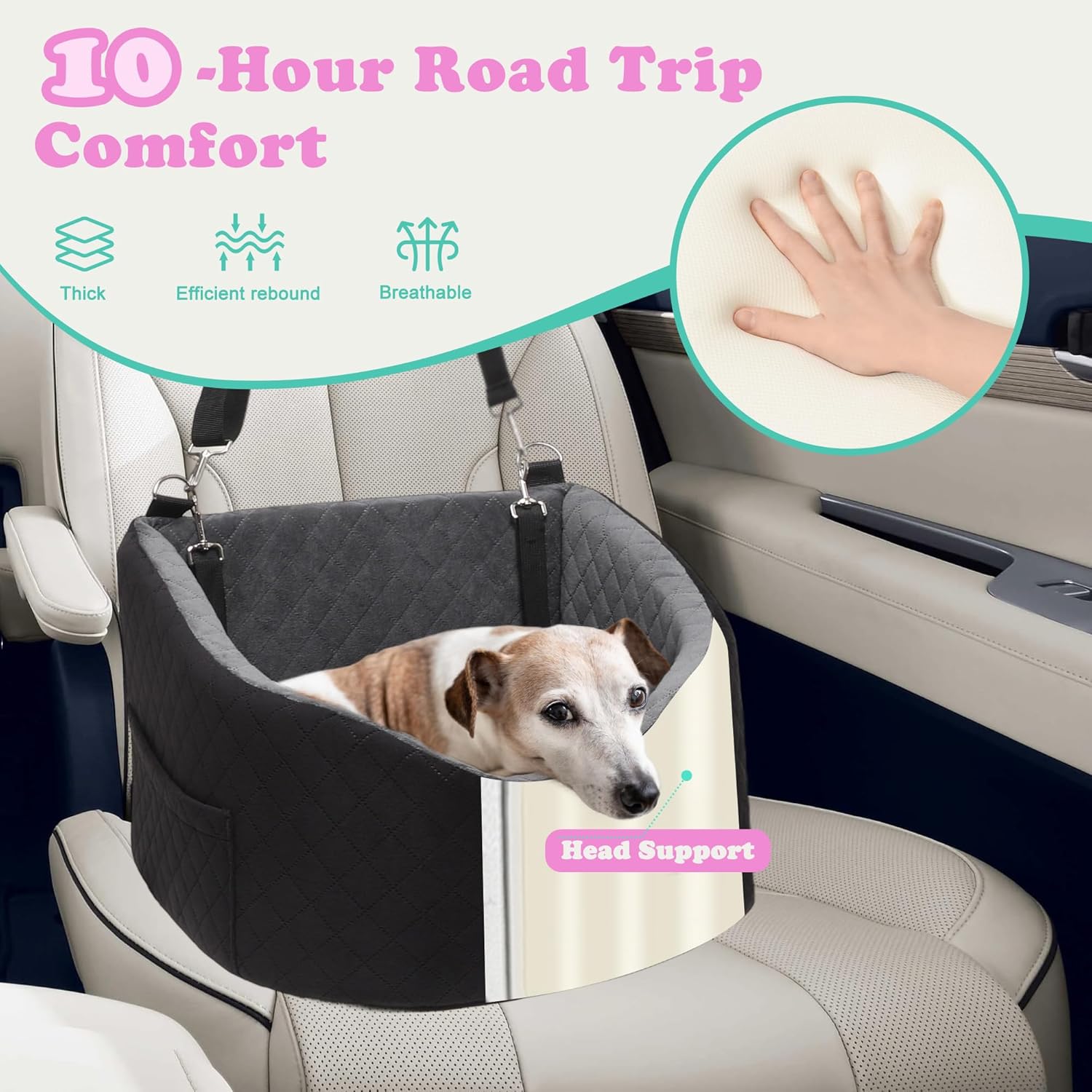 - π Help Your Dog Feel Calm: The raised seat lets your dog see out the window, helping them feel more secure and less restless during the ride; soft plush fabric and dense foam padding provide a calming, enclosed space that reduces stress from road noise and motion