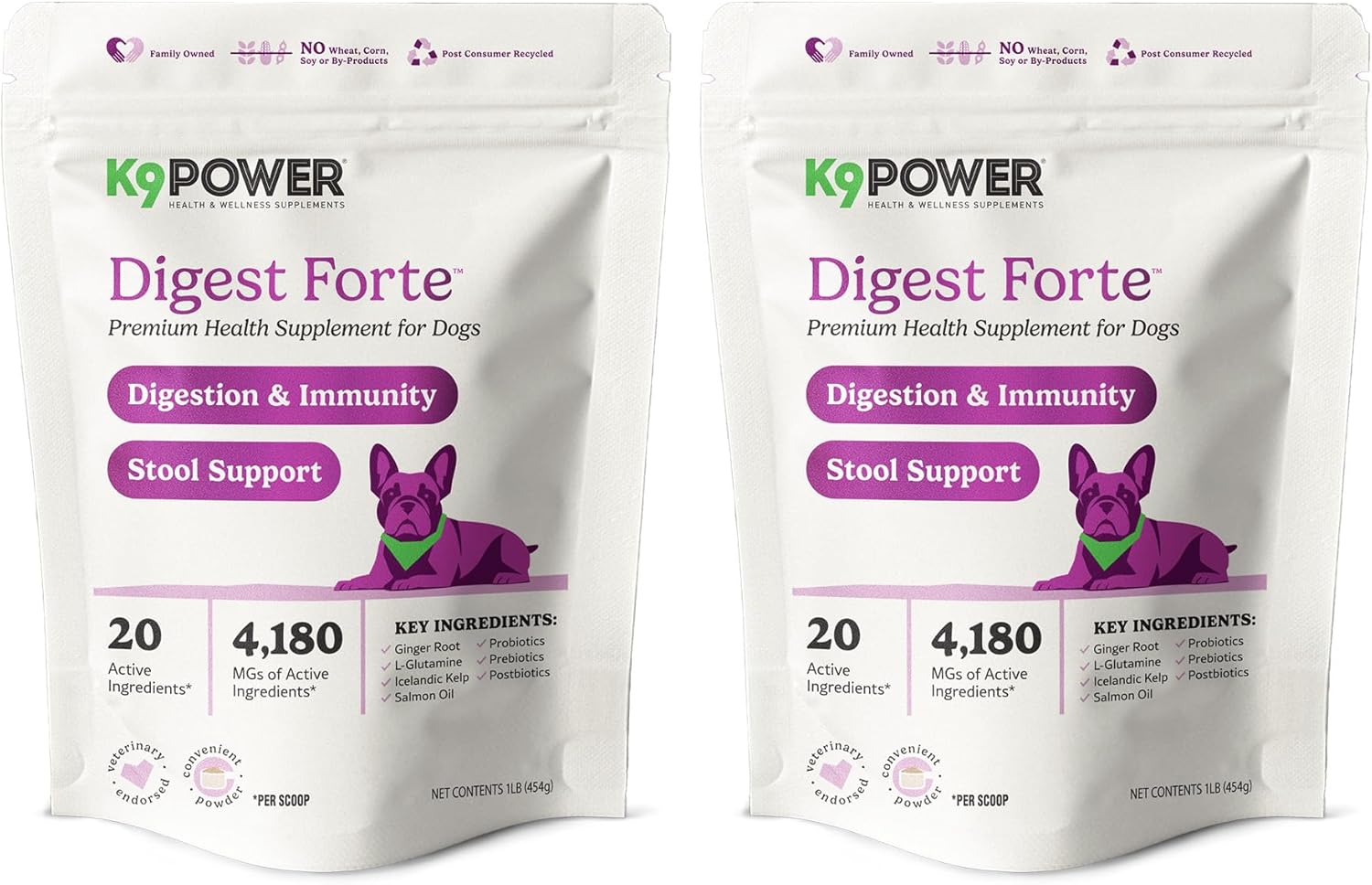 K9 Power Digest Forte for Dogs 1lb – Digestive, Immunity & Calming Support - Enhances Nutrient Absorption - Balances Gut Flora - Eases Discomfort & Boost Mood - Pack of 2