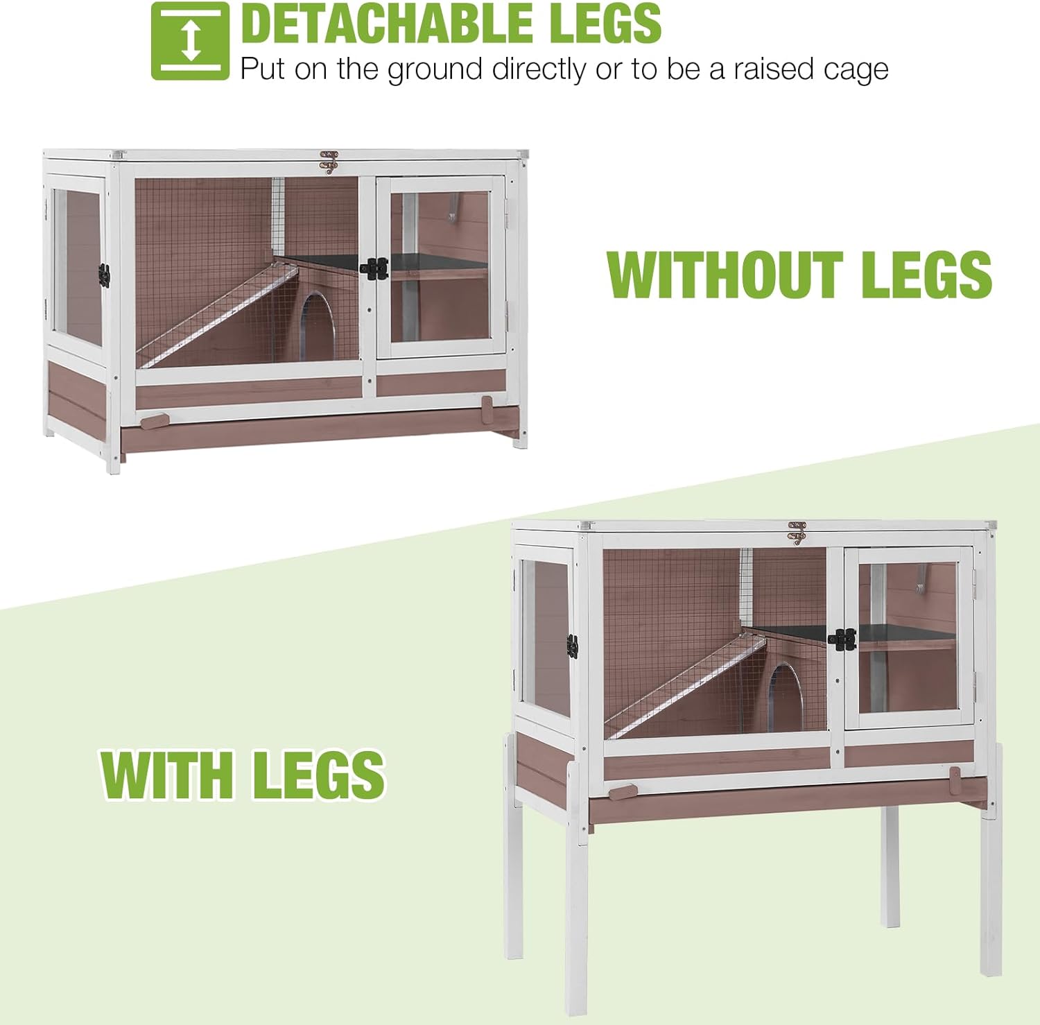 - Adjustable And Removable Legs: Comes with sturdy, removable legs for versatile placement. Use as a free-standing bunny cage or on a flat surface