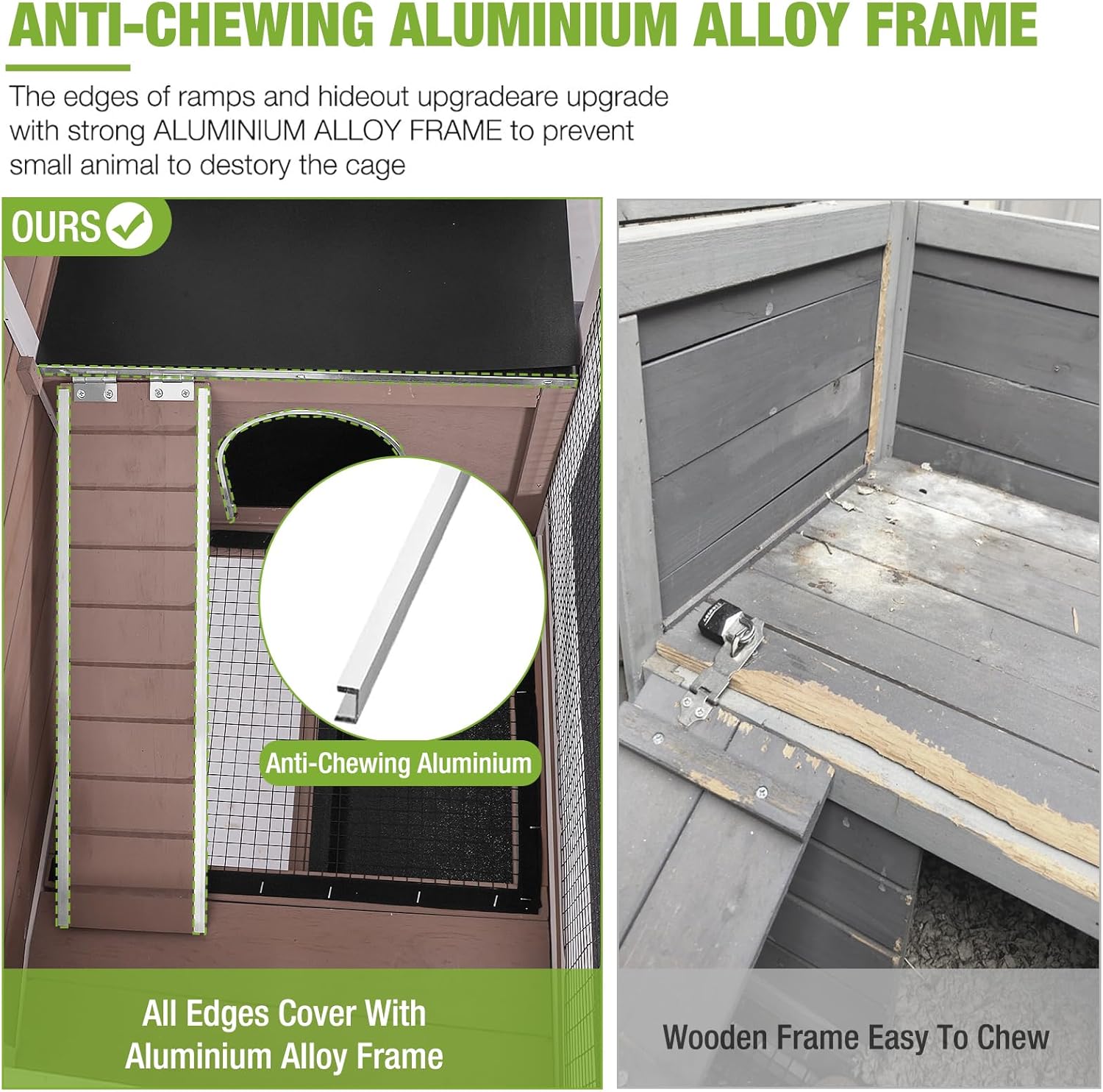 - Anti-Chew Protection: The edge of ramp and sleeping rabbit house upgraded with metal-edge to prevents chewing damage, keeping your pet safe and the cage intact