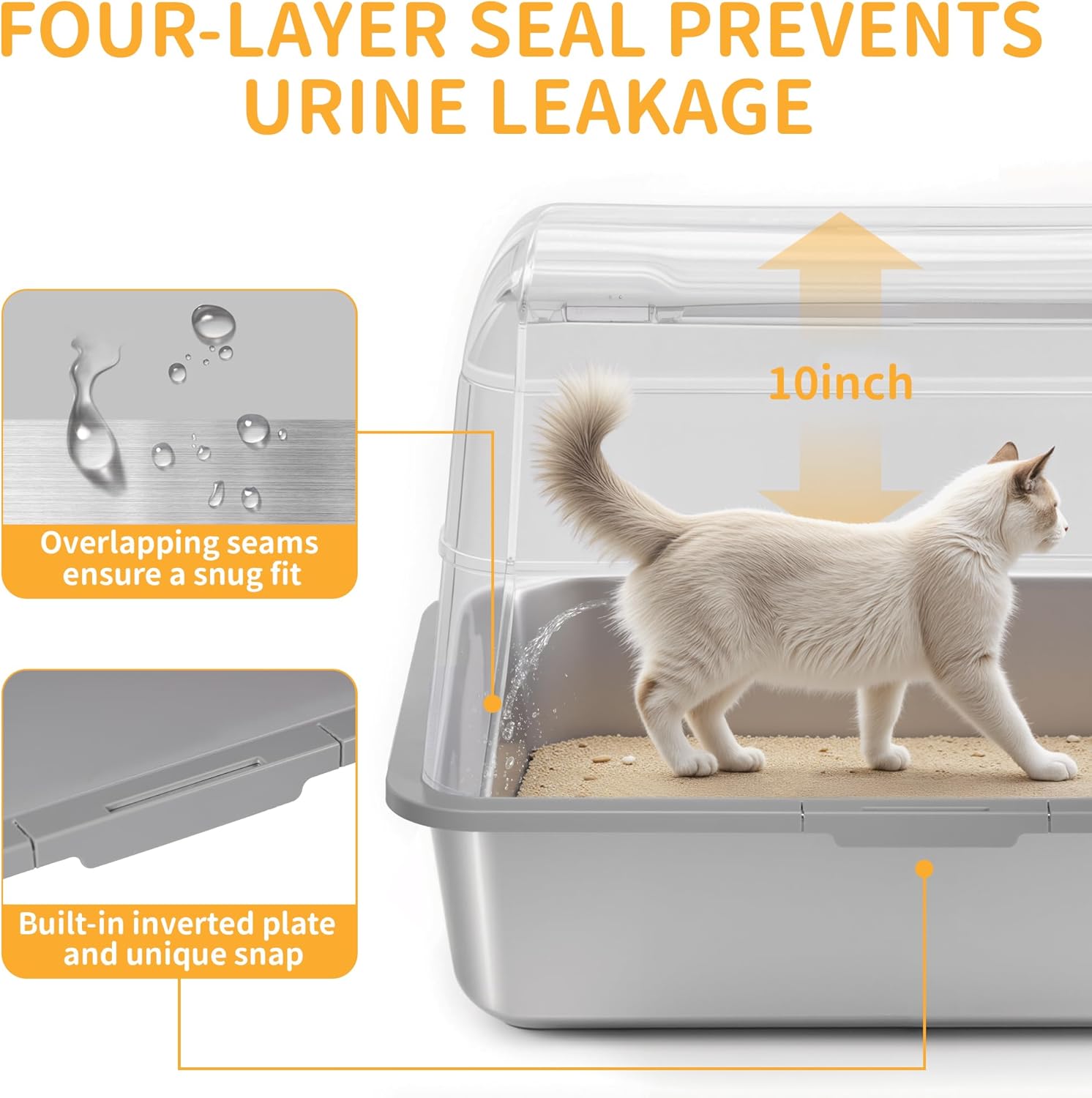 Stainless Steel Litter Box with Lid, XL Extra Large Cat Litter Box, Enclosed Metal Litter Pan with High Sided Enclosure & Scoop, Anti Leakage, Easy to Clean, Odor Control(Grey)