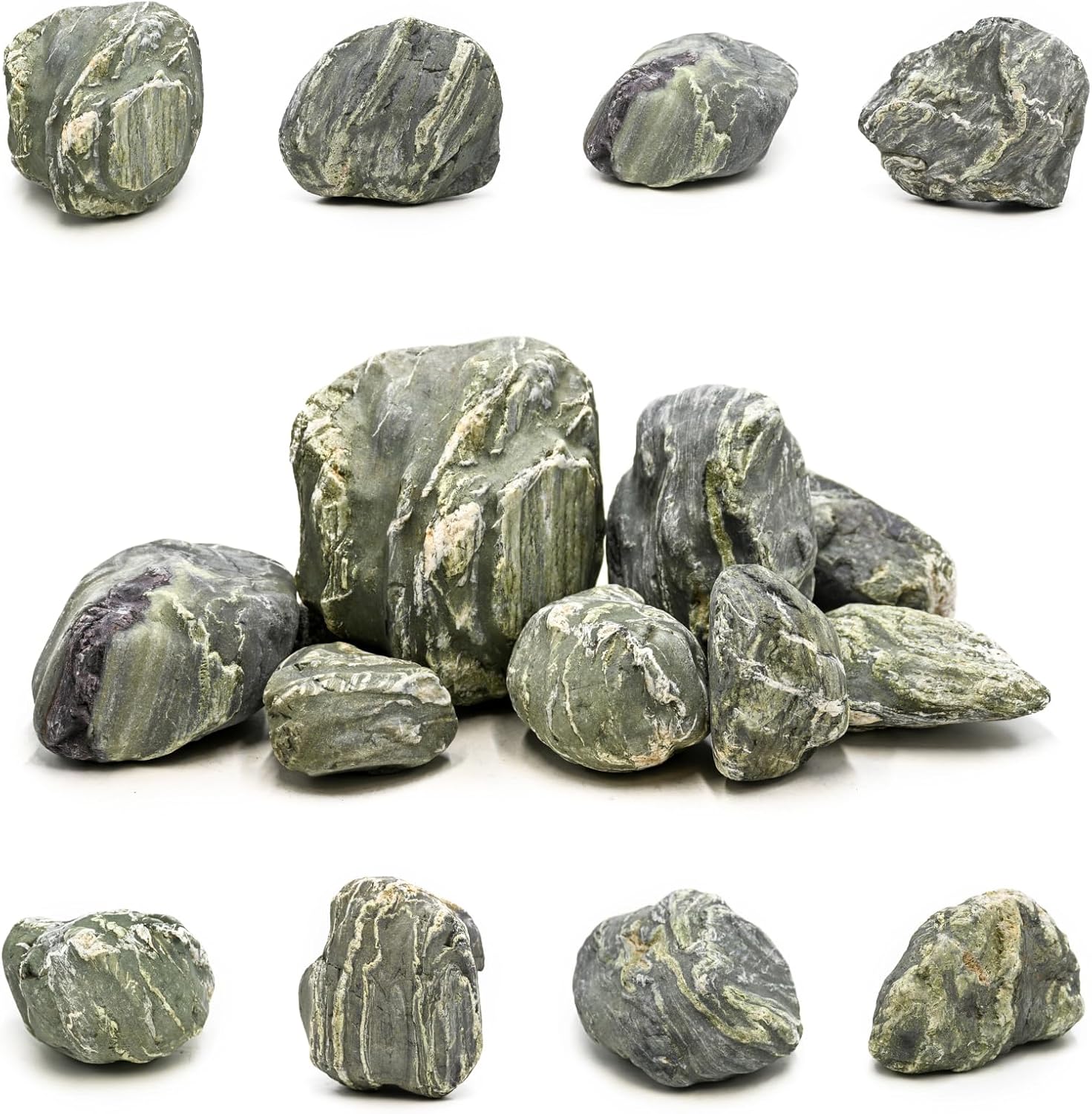 - 100% Natural Green River Rock— Made from genuine natural stone, this hard, dense, and durable rock is an ideal alternative to artificial resin stones. Perfect for freshwater aquariums, it is safe for long-term soaking with minimal impact on water pH, making them ideal for freshwater fish tanks.