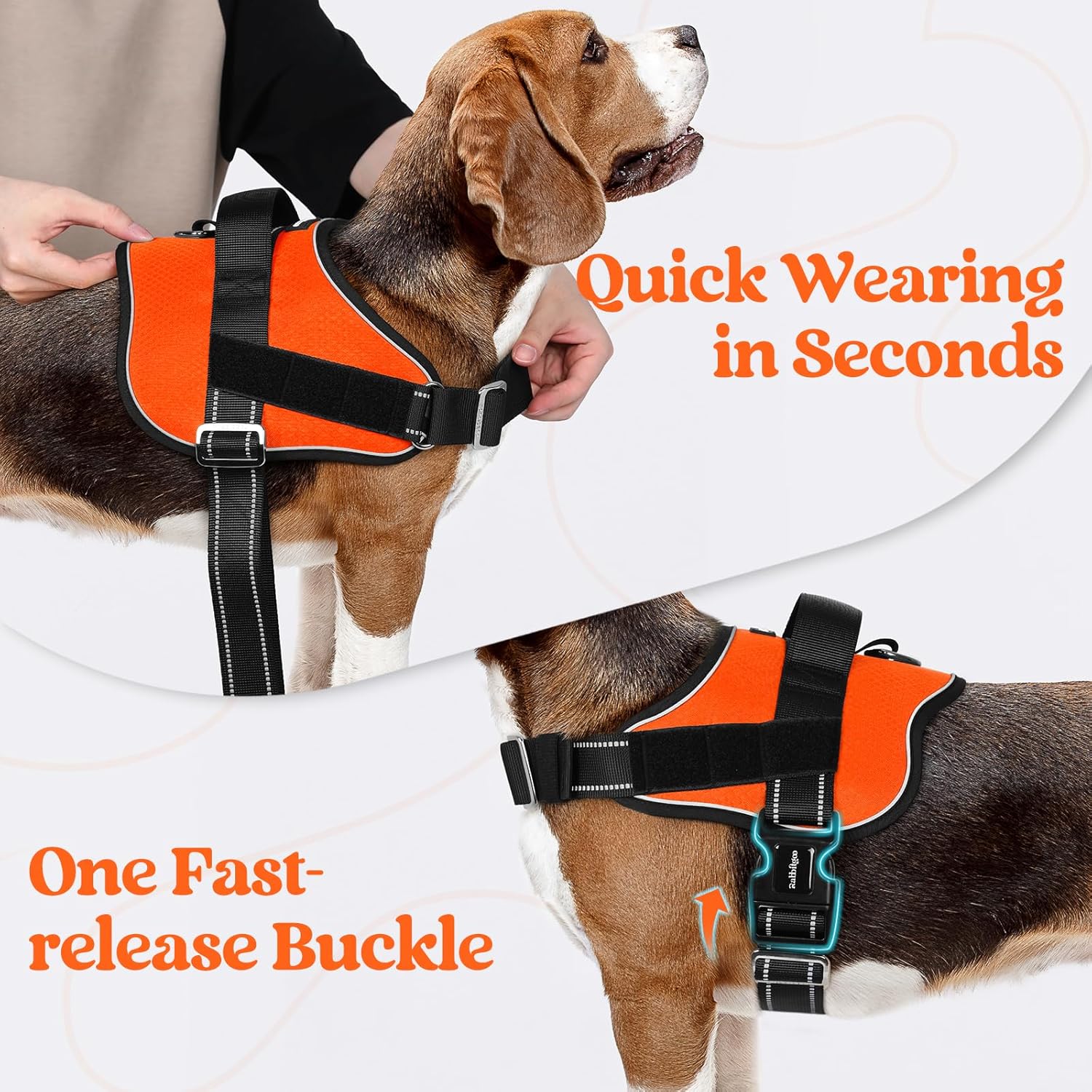 - Quick & Hassle-Free Wear: Get your pup ready in seconds! Slide the harness over their head, click the buckle, and you're ready! This effortless design makes everyday walks, runs, or hikes a breeze—perfect for busy pet parents looking for a simple yet reliable solution.