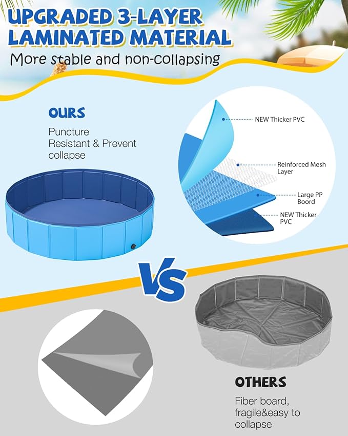 - Warm Tip:To protect the dog pool from scratches, trim your dog’s nails before use—ideal for excited pups who love to dig and splash.