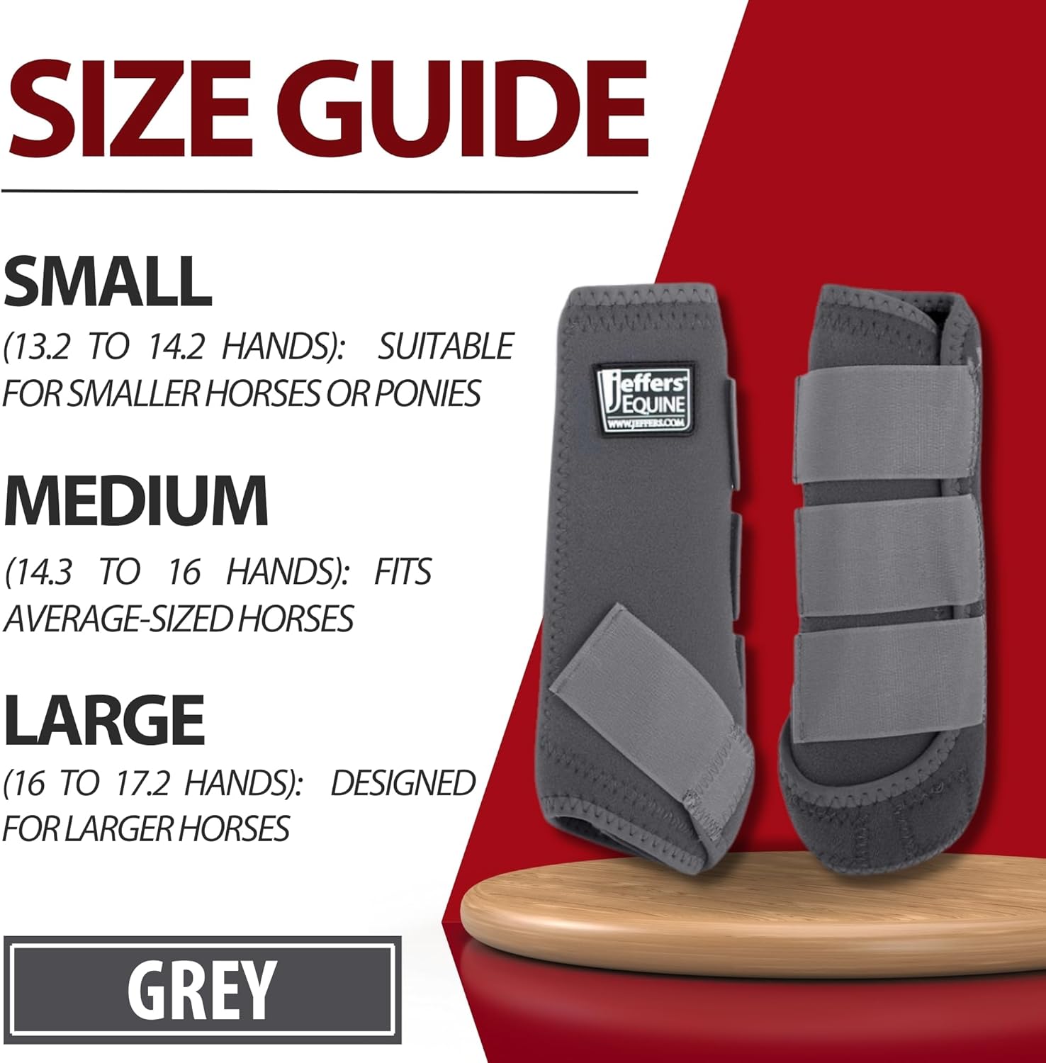 Jeffers Equine Protective Horse Boots 1 Pair Grey - Safe Neoprene Leg Guards & Comfortable Fit, Durable Strap Closures, Front & Hind Support, Equestrian Accessories for Travel & Riding - Large