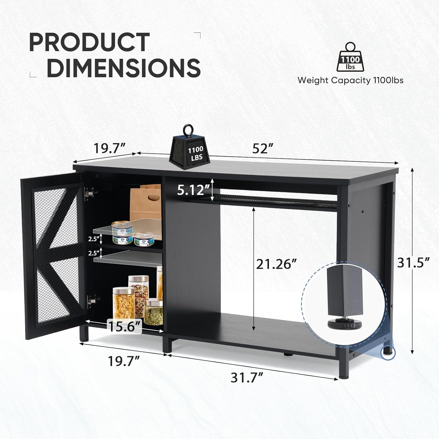 Verano 55-75 Gallon Aquarium Stand with Storage Cabinet, Fish Tank Stand with Power Outlets & LED Light, Wooden Turtle Tank 52 inch x 19.7-inch Desktop, Heavy Duty Steel Frame,1100LBS Capacity (Black)