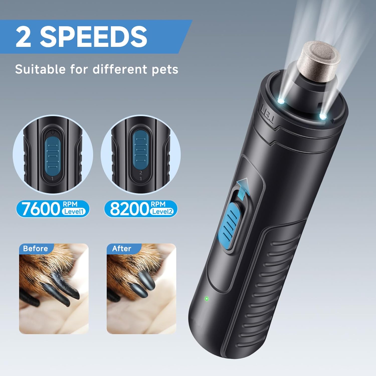 Dog Nail Grinder Quiet 2-Speed Pet Nail Grinder with 3 Led Lights and 3 Ports Rechargeable Electric Dog Nail Trimmer for Large and Small Dogs/Cats and Small Animals Safe (Black)