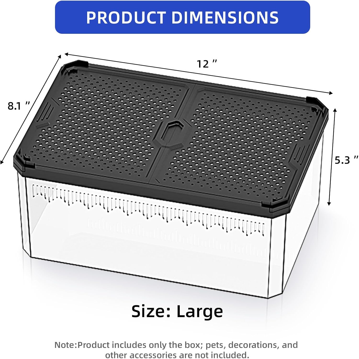 - γHigh Transparency DesignγMade with high-transparency material, offering excellent visibility. It ensures both the health of your pets and a clear view, making it perfect for temporary housing in your gecko tank, leopard gecko tank, or hermit crab habitat.