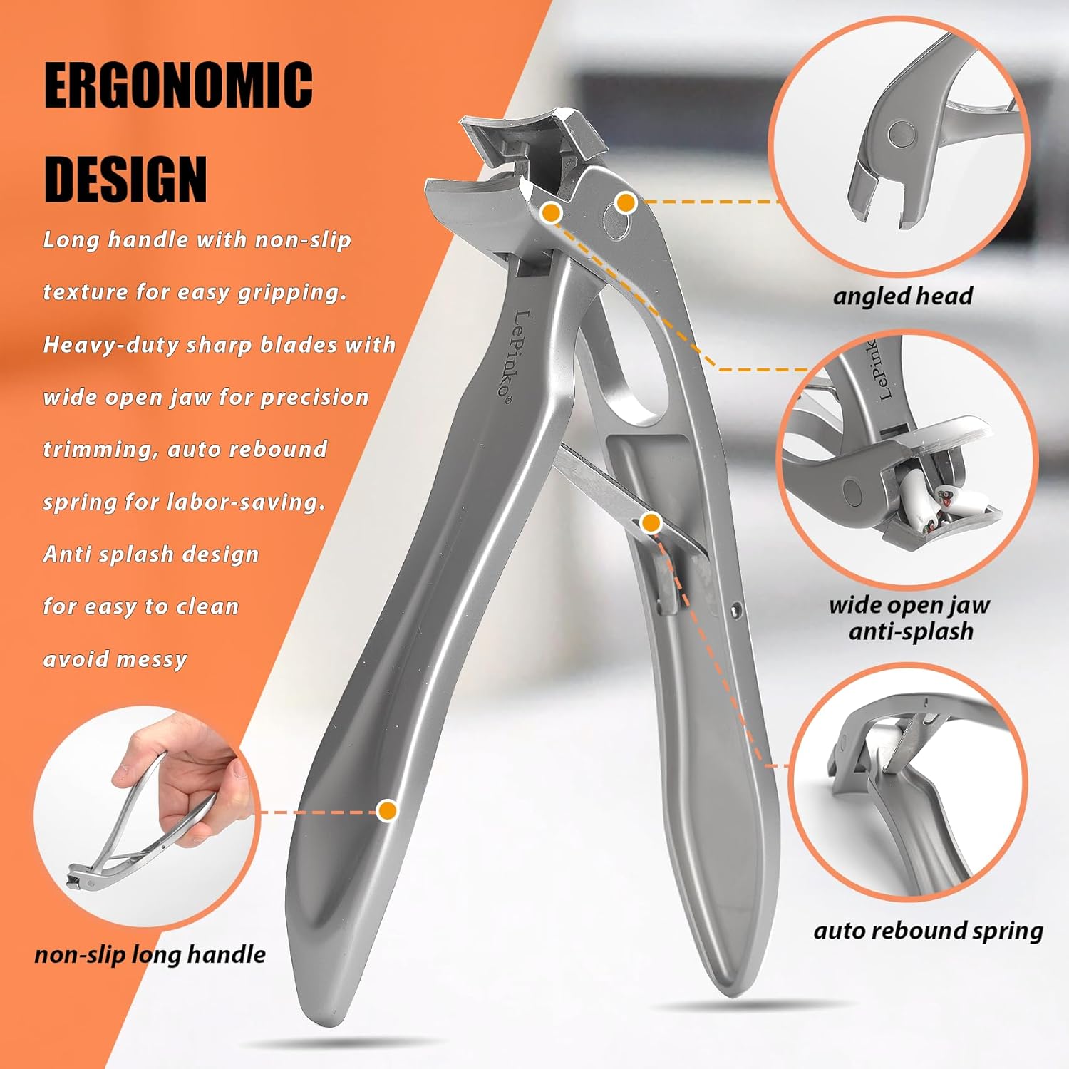 - Less Bend More Comfort - Angled head design avoid over-bending or bad posture, and prioritize comfort and correct nail care. No more twisting and bending your body to cut your toenails, perfect for seniors, men, women, adults, pregnant women, obese and more.