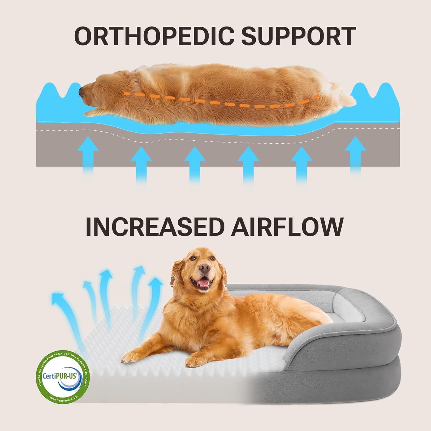 Soft Touch Orthopedic XL Dog Bed for Large Dogs with Faux Fur Top, Waterproof Pet Couch Bed with Removable Washable Cover and Supportive Foam Filling (Grey, Extra Large)