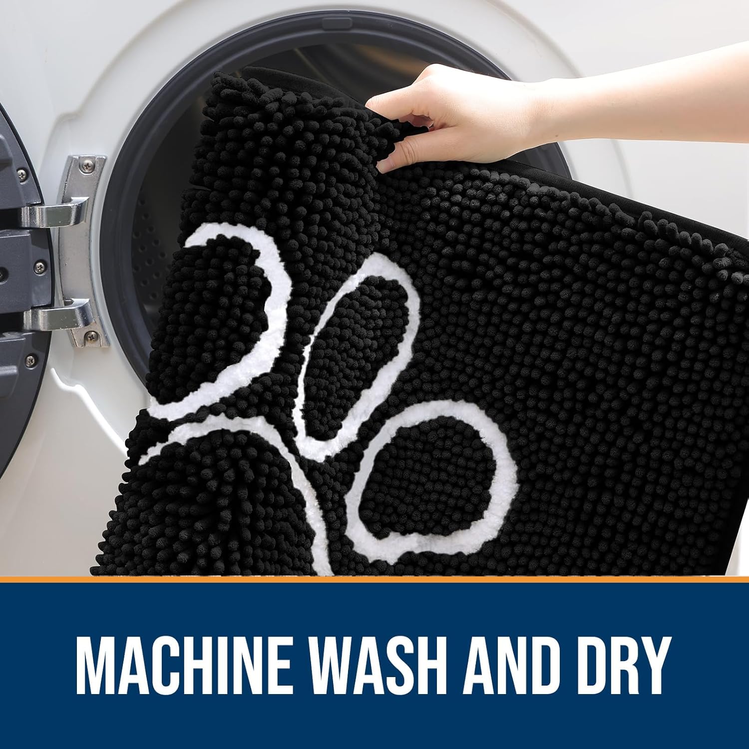 OLANLY Door Mat for Muddy Dog Paws 70x24, Ultra Absorbent Chenille Mud Doormat with Paw Print Design, Non-Slip Washable Doormat for Indoor Entryway, Quick-Dry Pet Bed Mats for Dirty Dogs, Black