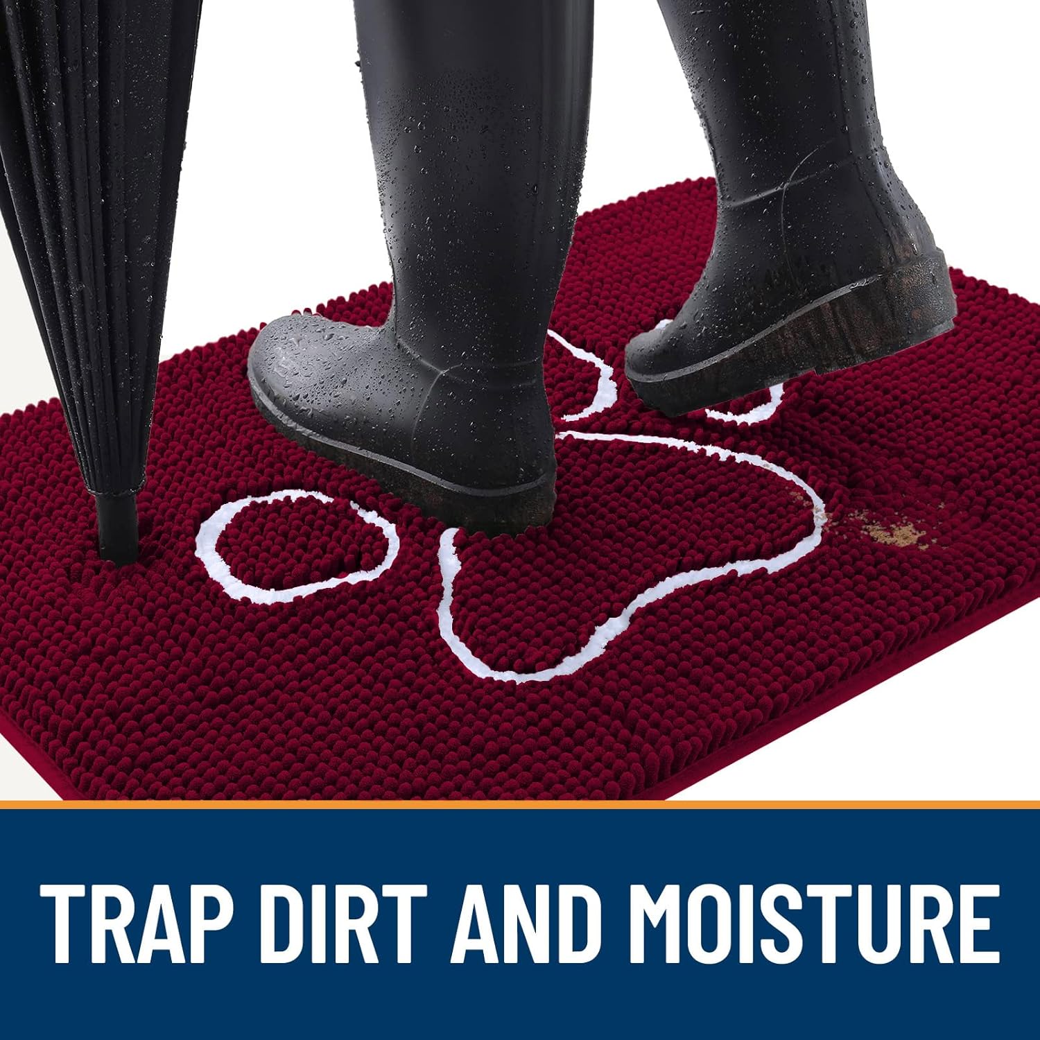 - [ABSORBS MOISTURE AND DIRT] OLANLY indoor dog mat for muddy paws is crafted to efficiently remove dirt and swiftly absorb moisture. With our doormat, your shoes will be instantly clear of any water, dust, grit, muck, sand, sleet, grass, slush, rain, or snow upon entering the house. It's an excellent choice for use as an entryway door mat, a welcoming door mat, or a dirt-trapping mat.