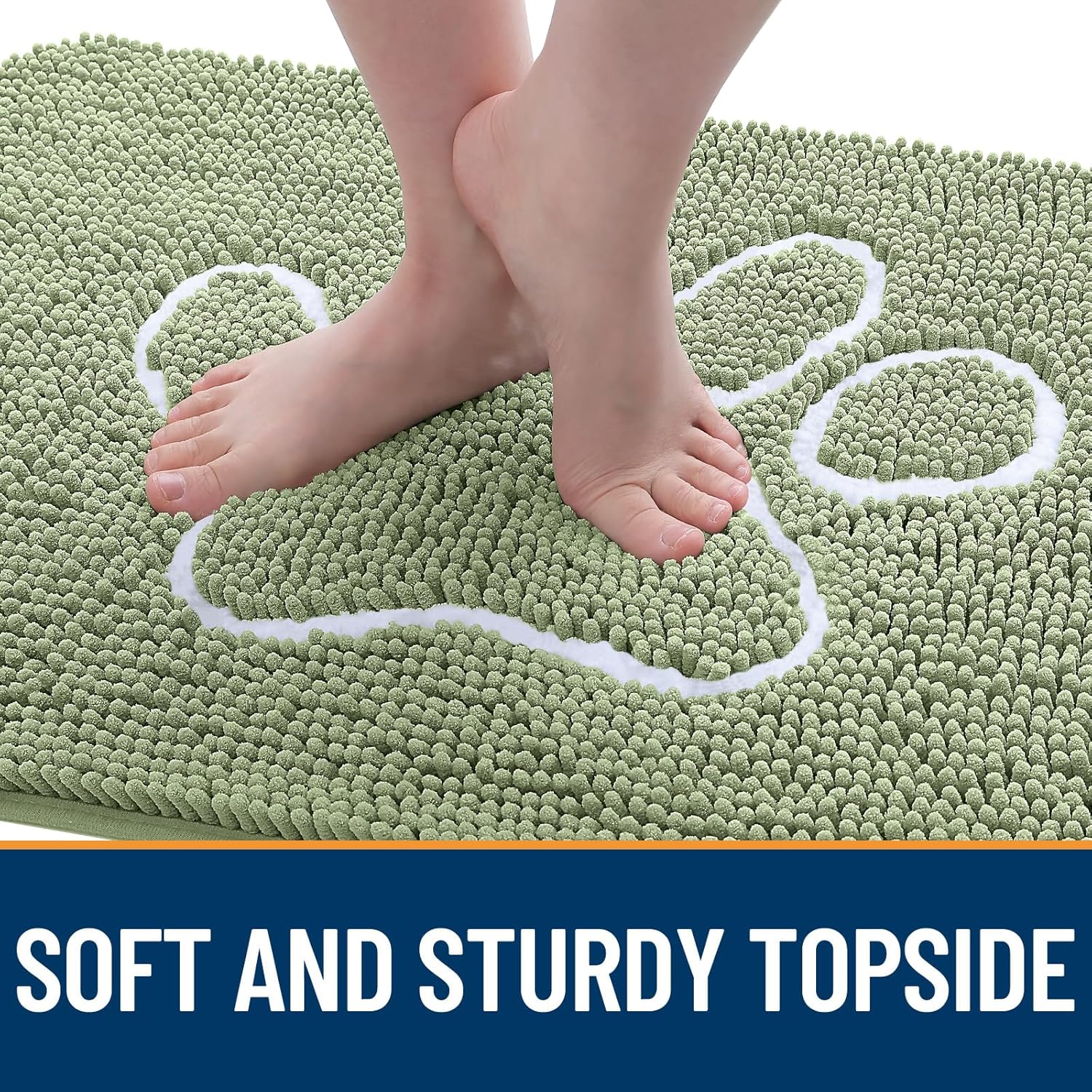 OLANLY Door Mat for Muddy Dog Paws 30x20, Ultra Absorbent Chenille Mud Doormat with Paw Print Design, Non-Slip Washable Doormat for Indoor Entryway, Quick-Dry Pet Bed Mats for Dirty Dogs, Sage Green