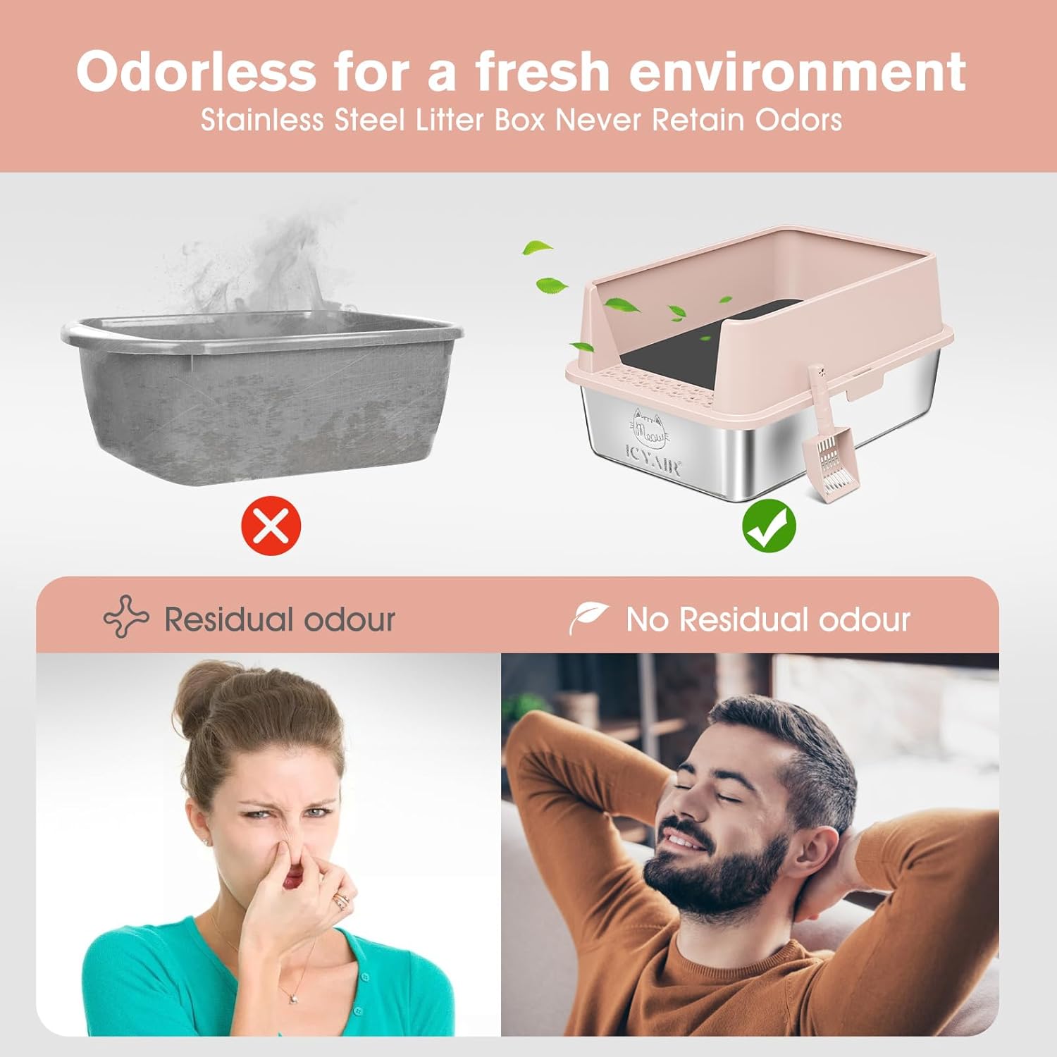 - 【Durability means saving money and effort】:ICYAIR cat litter box is made of high quality stainless steel. It is rust free and sturdy. It is not only stands up to the wear and tear of daily use but also prevents scratches from cat claws. All of these features are contributing to an extended service life at least 3-5 years. Investing in this stainless steel litter box is akin to saying farewell to the hassle of replacing plastic alternatives.