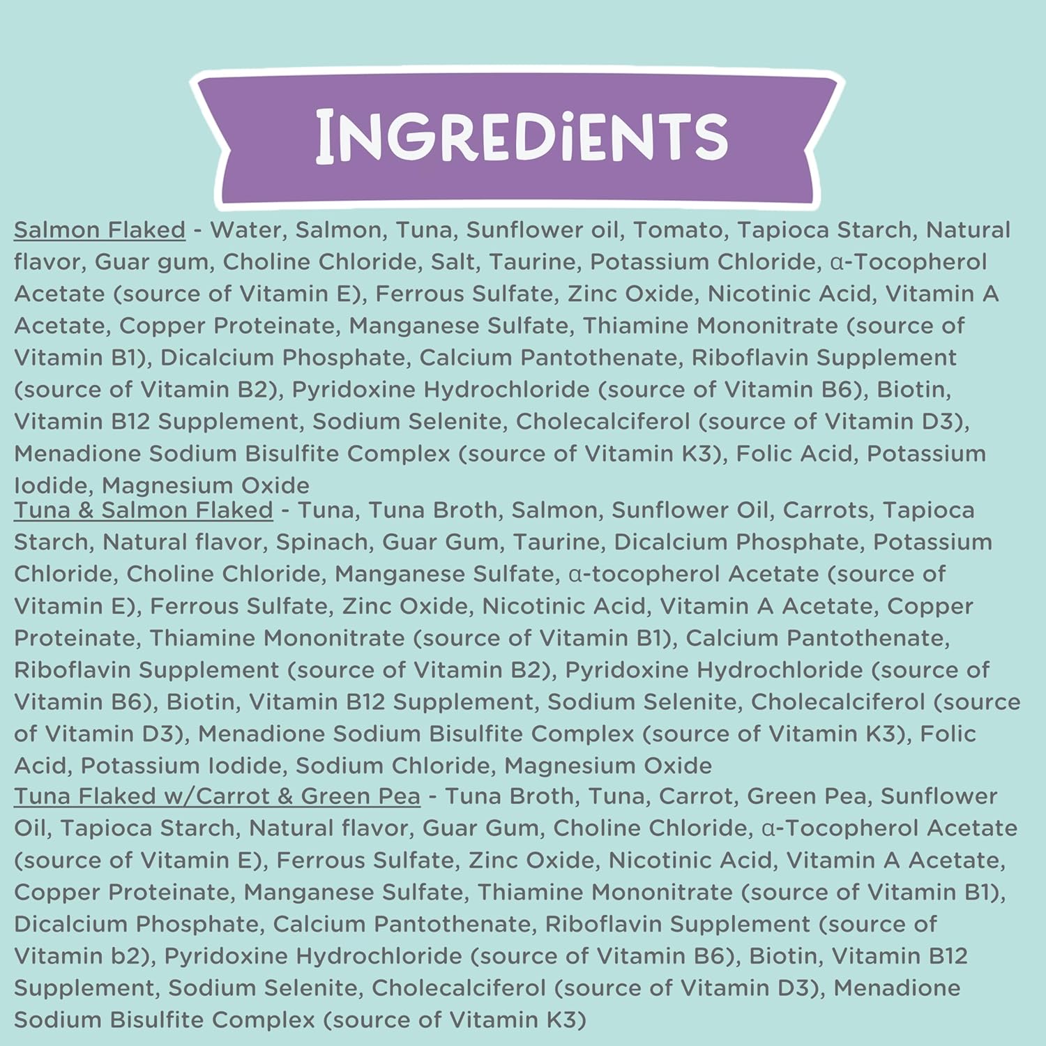 - GRAIN FREE & NON-GMO: Our tuna, salmon, & chicken variety pack is prepared without any grains, artificial additives, or by-products, as our goal is to feed cats the way nature intended. We always source wholesome ingredients to promote optimal health and nutrition.