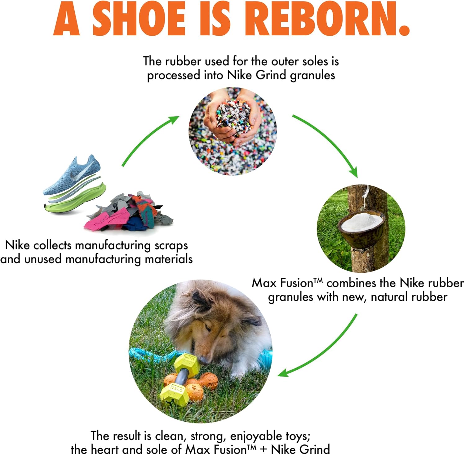 - SAFE & DURABLE RUBBER MATERIAL: Crafted with a durable blend of Nike Grind rubber and natural rubber, this strong dog toy for aggressive chewers is built to last through repeated play sessions. The thick rubber material provides a firm yet flexible feel thatβs safe for your dogβs teeth and gums, making it a great option for teething puppies or adult dogs that love to gnaw. No sharp edges, no weak spotsβjust long-lasting fun.