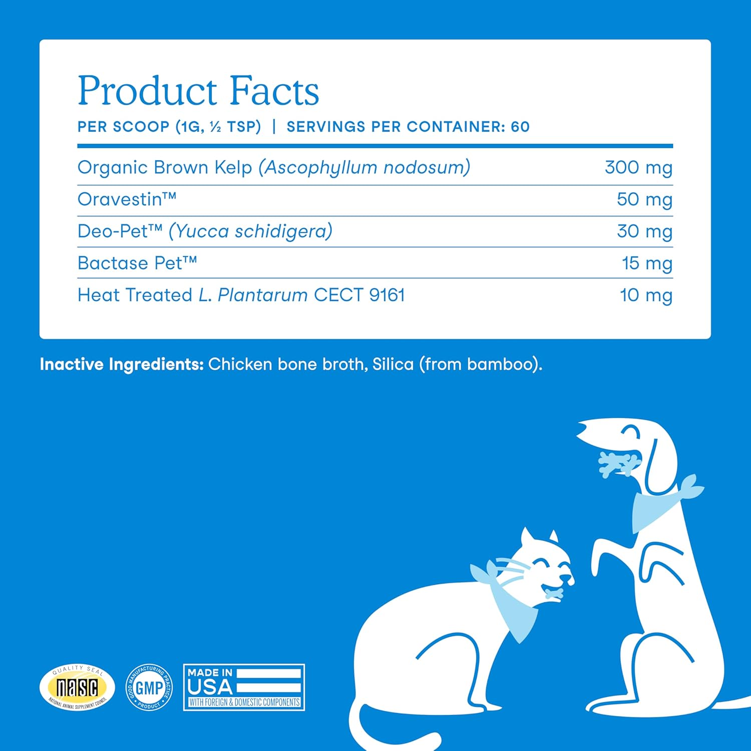 - Veterinarian formulated: Dental support is crafted by our Co-Founder, Veterinarian Dr. Dulake; our Dental Powder for dogs and cats bears the NASC quality seal, is made in the USA, GMP-compliant, and does not contain colors, dyes or preservatives