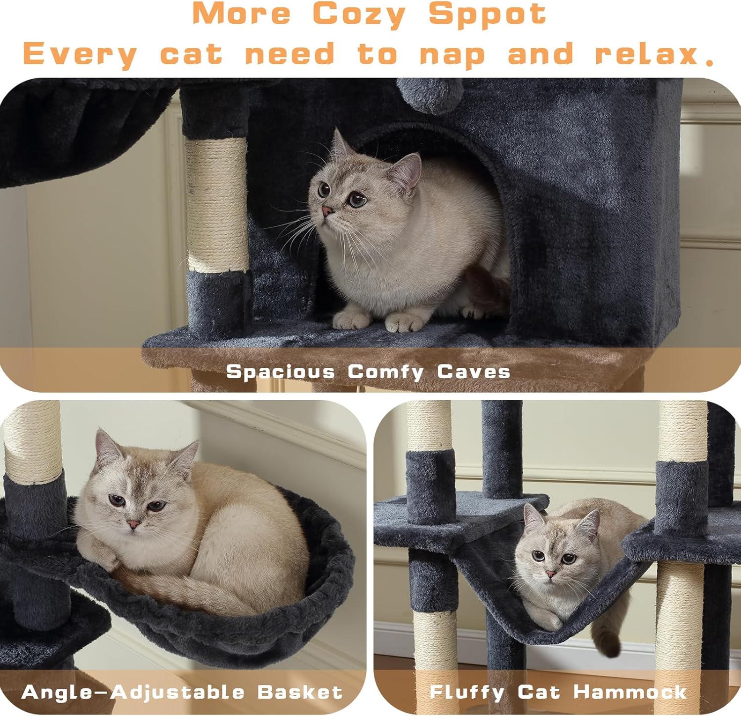 70-Inch Cat Tree,Large Cat Tree Tower with Hammock, Scratching Post, Condo and Multi-Level Cat Tower for Large Cats, Cat Activity Center Playhouse, Dark Gray LCT016
