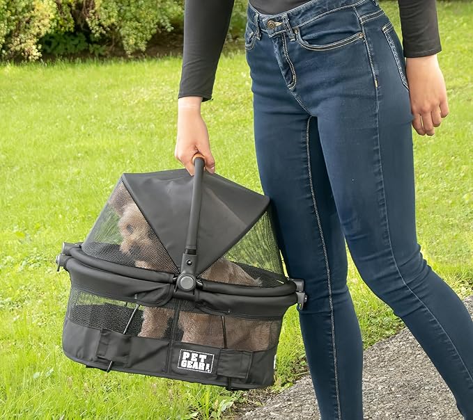Pet Gear No-Zip View 360 Ultra Lite Pet Safety Carrier & Car Seat for Small Dogs & Cats Push Button Entry, 15", Onyx