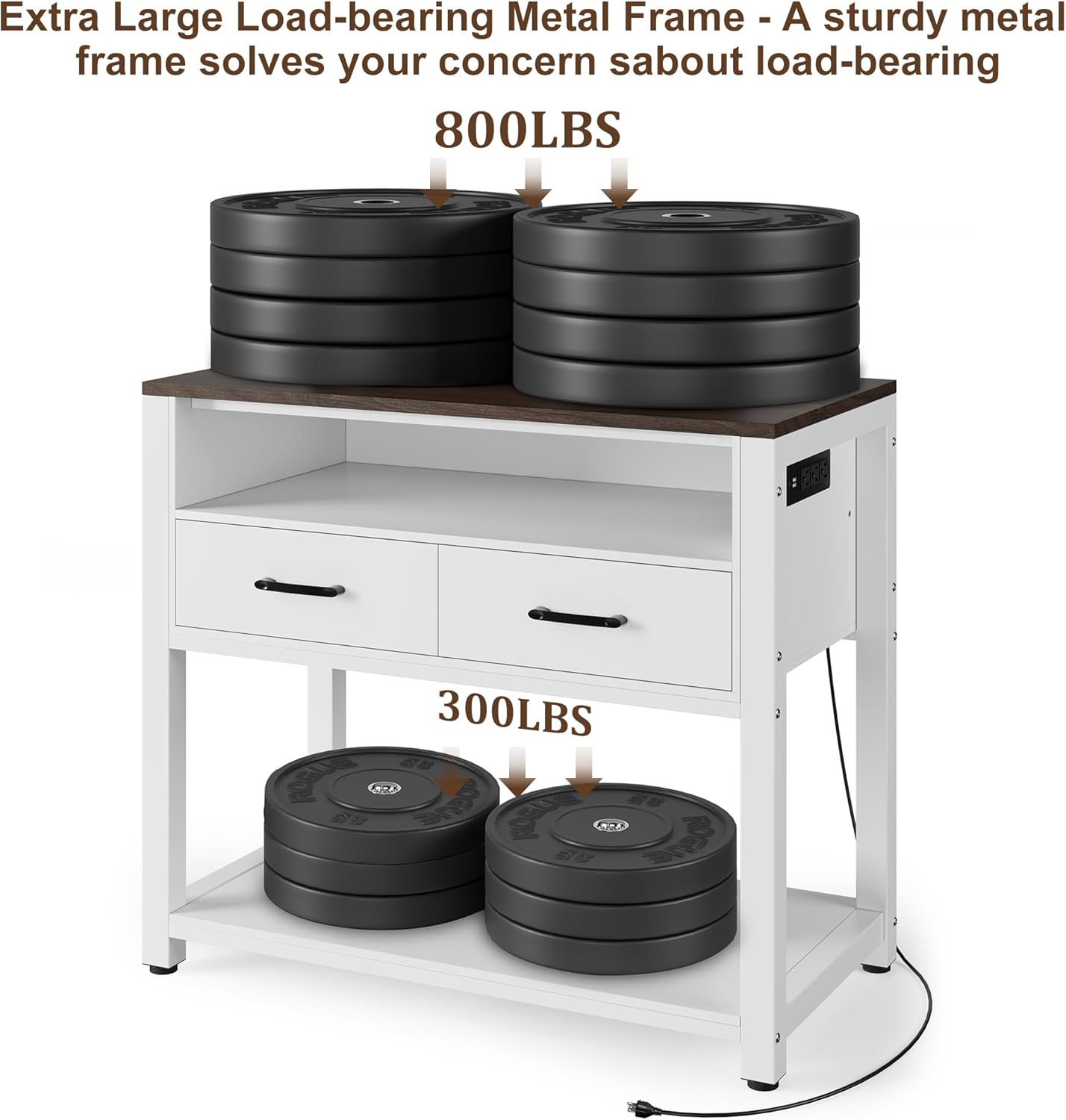 40-49 Gallon Fish Tank Stand with Two Storage Drawers, Heavy Duty Aquarium Stand with Waterproof Mat, Sturdy Metal Frame, 800 LBS Capacity Storage Cabinet, White