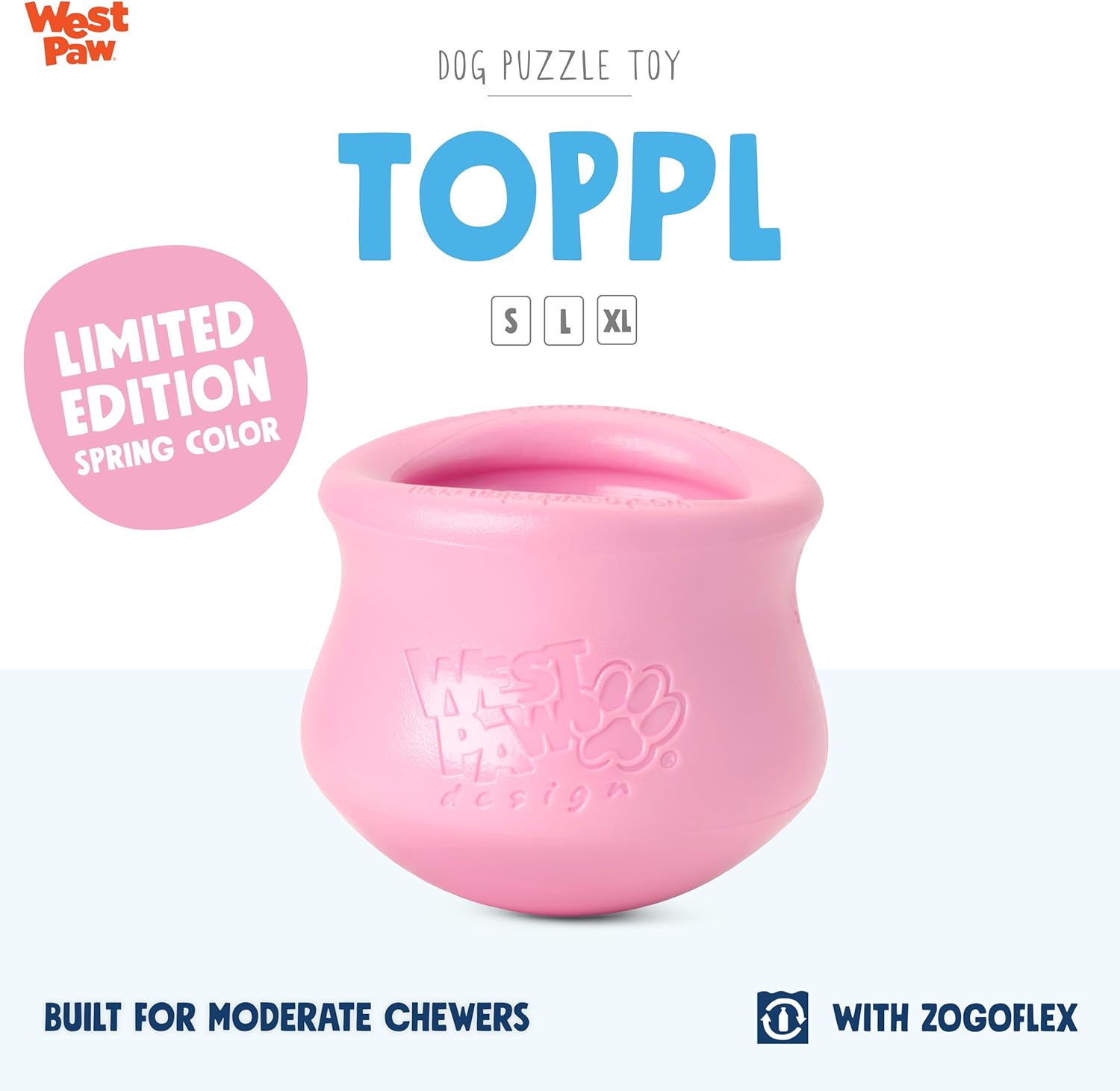 WEST PAW Zogoflex Limited Edition Toppl Treat Dispensing Dog Toy Puzzle – Interactive Chew Toys for Dogs – Dog Toy for Moderate Chewers, Fetch, Catch – Holds Kibble, Treats, Small 3", Bubblegum