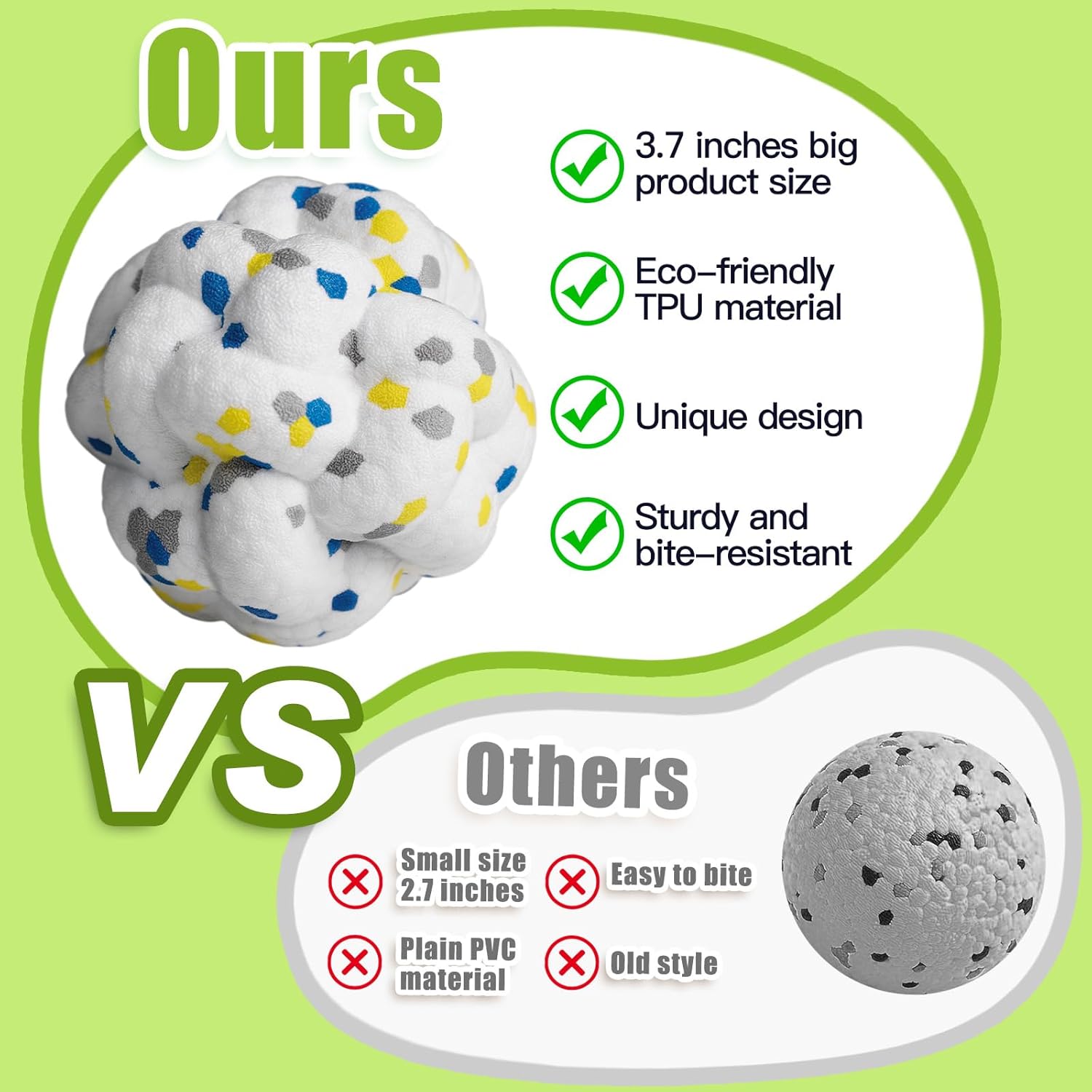 - 【Unique Design】Our dog ball adds multiple bumps for a more innovative look compared to traditional dog balls, and the bumps are more conducive to cleaning teeth and protecting dental health, as well as increasing the excitement when playing.