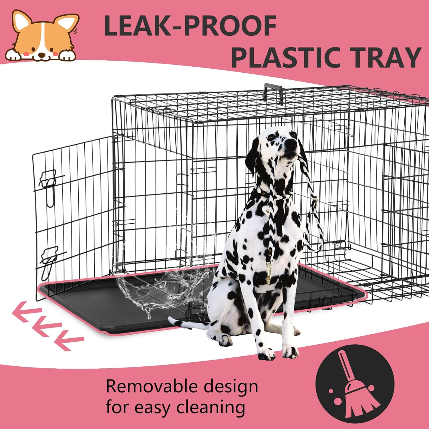 - 【Leak-Proof Plastic Tray】This dog crate features a detachable, leak-proof plastic tray that runs the length of the crate, making cleanup simple in the event of an accident. For dog dishes that won't slip, look for a textured surface.Dog cage dog crate dog kennel