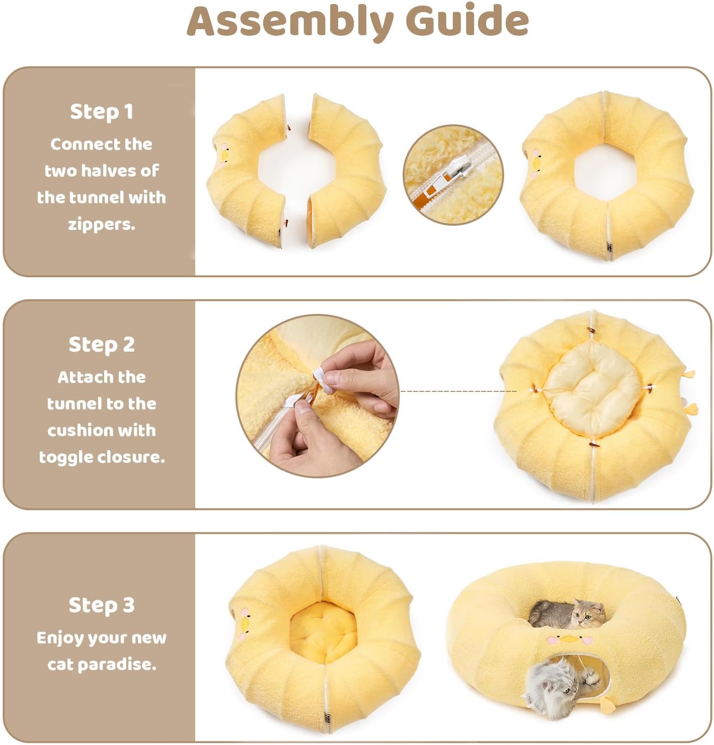 • Versatility: The innovative 2-in-1 cat tunnel bed allows your pet to play and rest at the same time. Designed with the excitement of a zippered play tunnel and the serenity of a cozy nap.