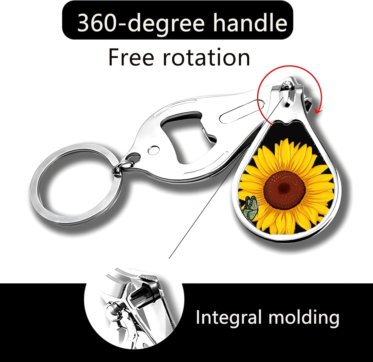 Nail Clippers with Key Chain Cute Stainless Steel Nail Cutter with File Professional Toenail Clipper for Men Multifunction Toenail Clipper 2 Pack Nique Cutter for Adult(Big Sunflower)