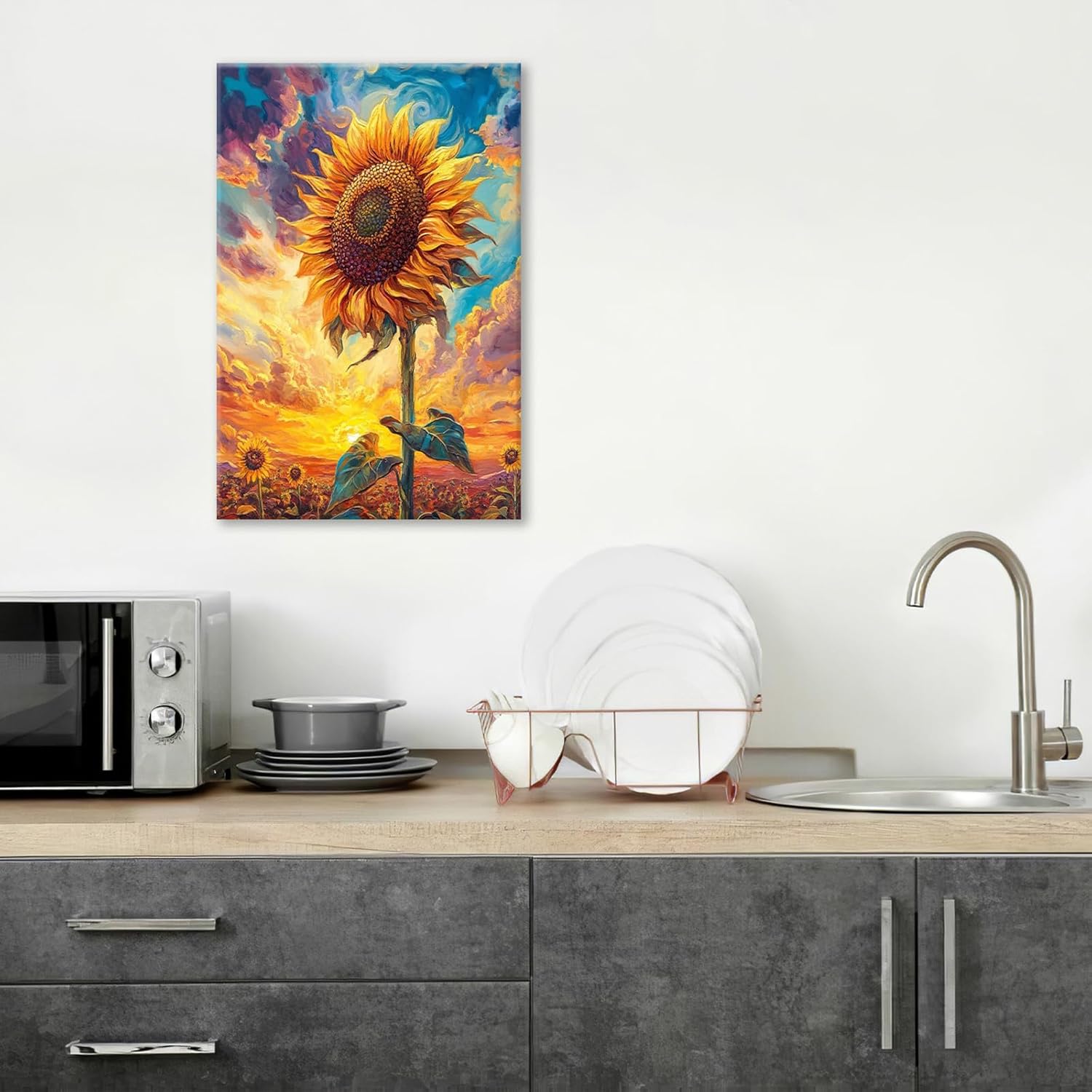 Sunflower Wall Art Canvas Yellow Floral Wall Decor Prints Framed Painting Pictures Gifts Artwork for Bathroom Bedroom Living Dining 16"x24"