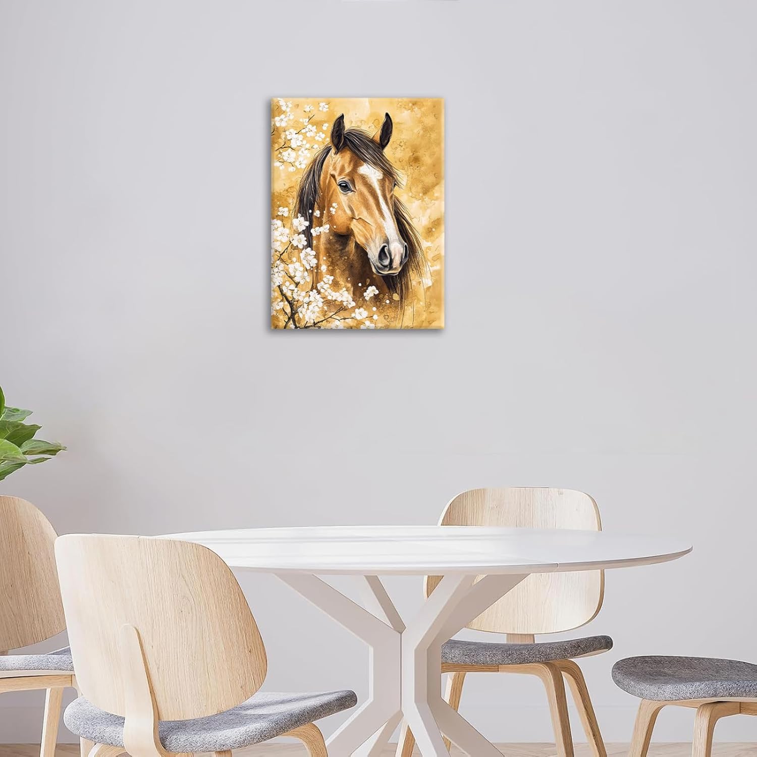Horse Wall Art Canvas Rustic Horse Wall Decor Prints Framed Painting Farmhouse Flower Pictures Gifts Artwork for Bathroom Living Dining 12"x16"