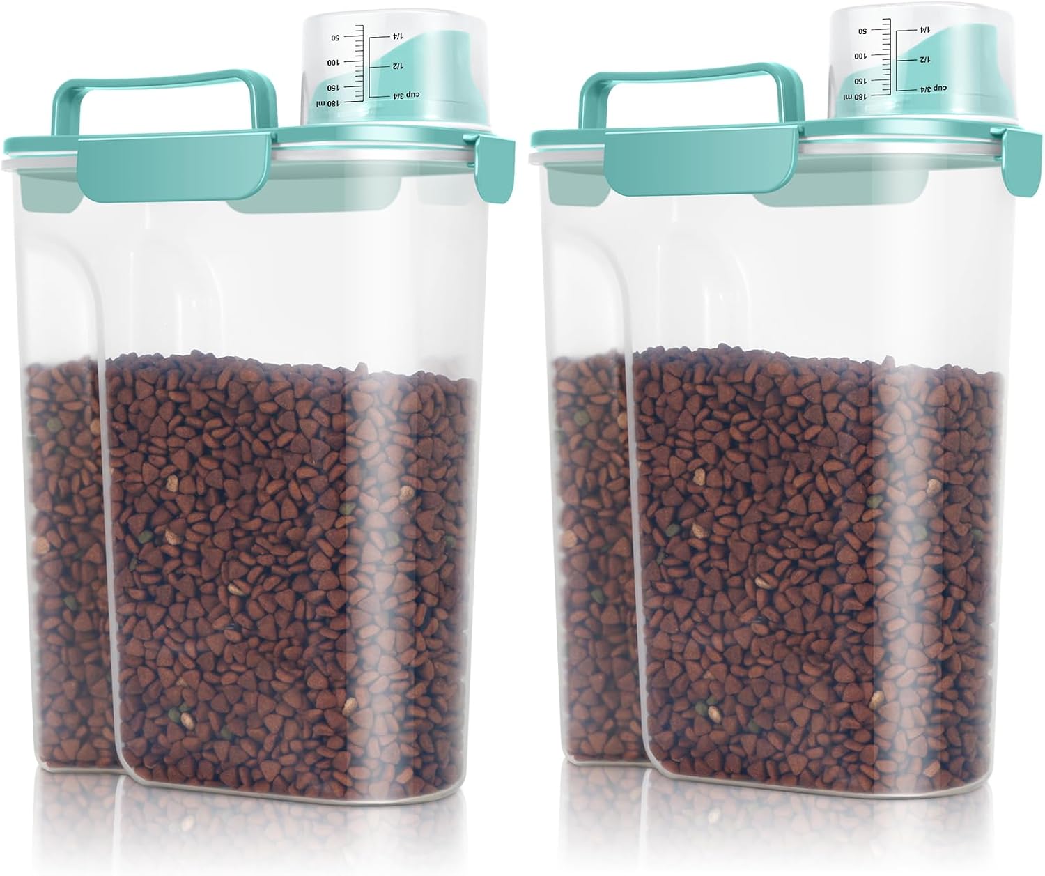 - Airtight Dog Food Container: With the snap-lock latches and silicone gaskets, the dog food dispenser can shut tightly to seal in freshness. You dog or cat won't open the container and make a mess any more