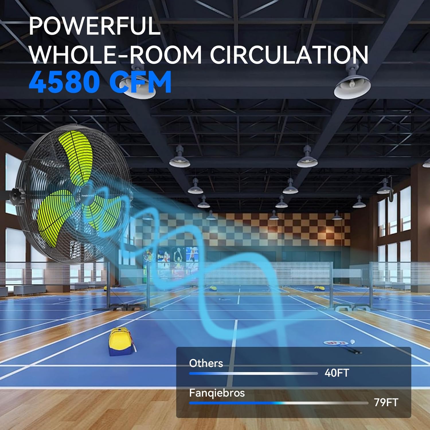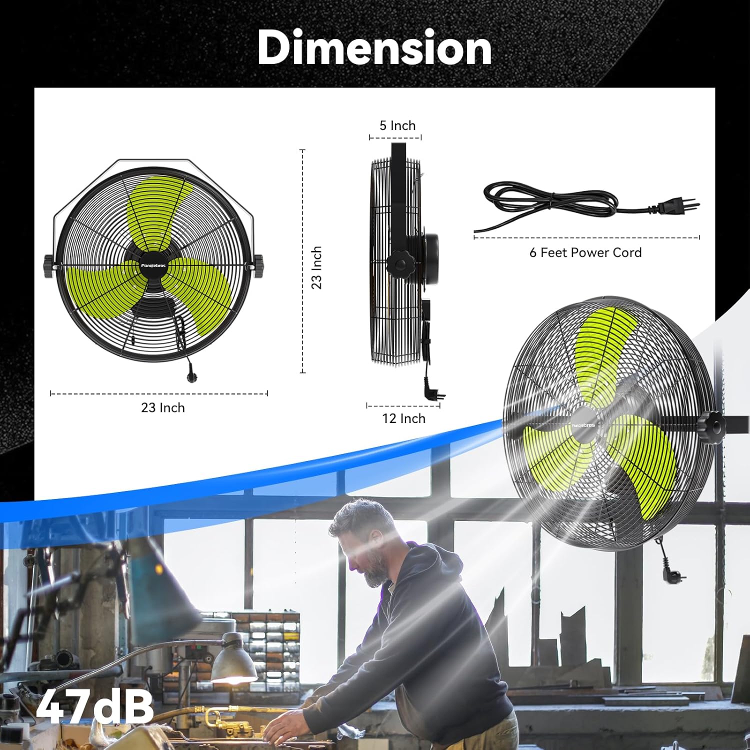 - 𝐋𝐨𝐰-𝐍𝐨𝐢𝐬𝐞 𝐃𝐞𝐬𝐢𝐠𝐧 - The heavy-duty wall fan operates at a high speed of 4580 CFM with a noise level of only 60dB, which is lower than the industry standard, creating a quieter gathering or working environment