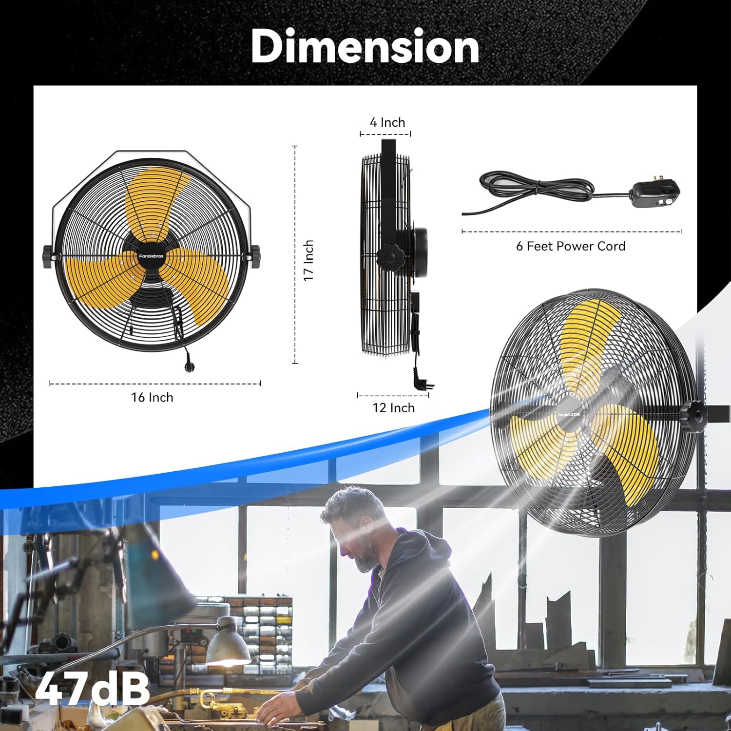 - 𝐋𝐨𝐰-𝐍𝐨𝐢𝐬𝐞 𝐃𝐞𝐬𝐢𝐠𝐧 - The heavy-duty wall fan operates at a high speed of 2600 CFM with a noise level of only 54dB, which is lower than the industry standard, creating a quieter gathering or working environment