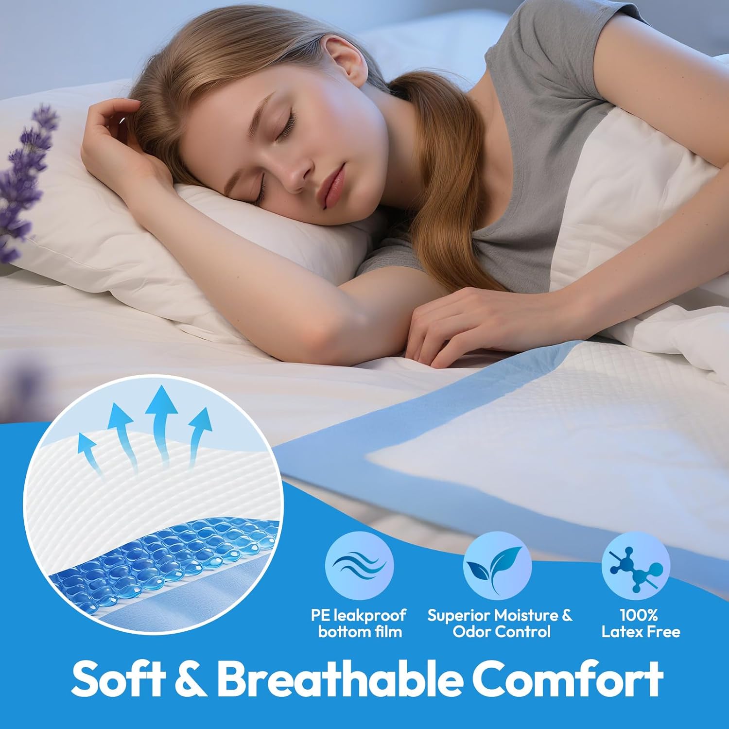 - Jumbo Size for Full Coverage: Our 40x40 inch incontinence bed pads are bigger and thicker than most underpads, provide complete coverage for beds, sofas, wheelchairs or any surface, offering all day protection for kids, adults incontinence and puppy training
