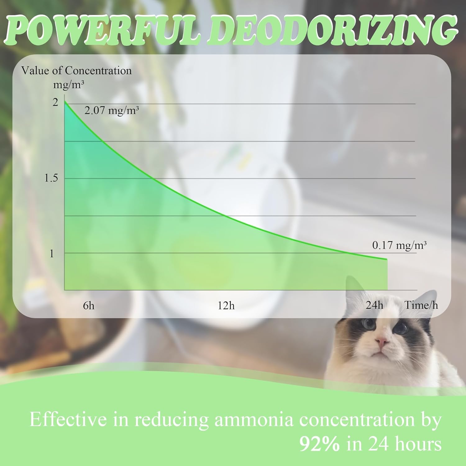 - Powerful Odor Elimination: This pet odor eliminator can effectively remove odors, ammonia removal rate up to 95%, ensuring a fresher living environment for you and your pets